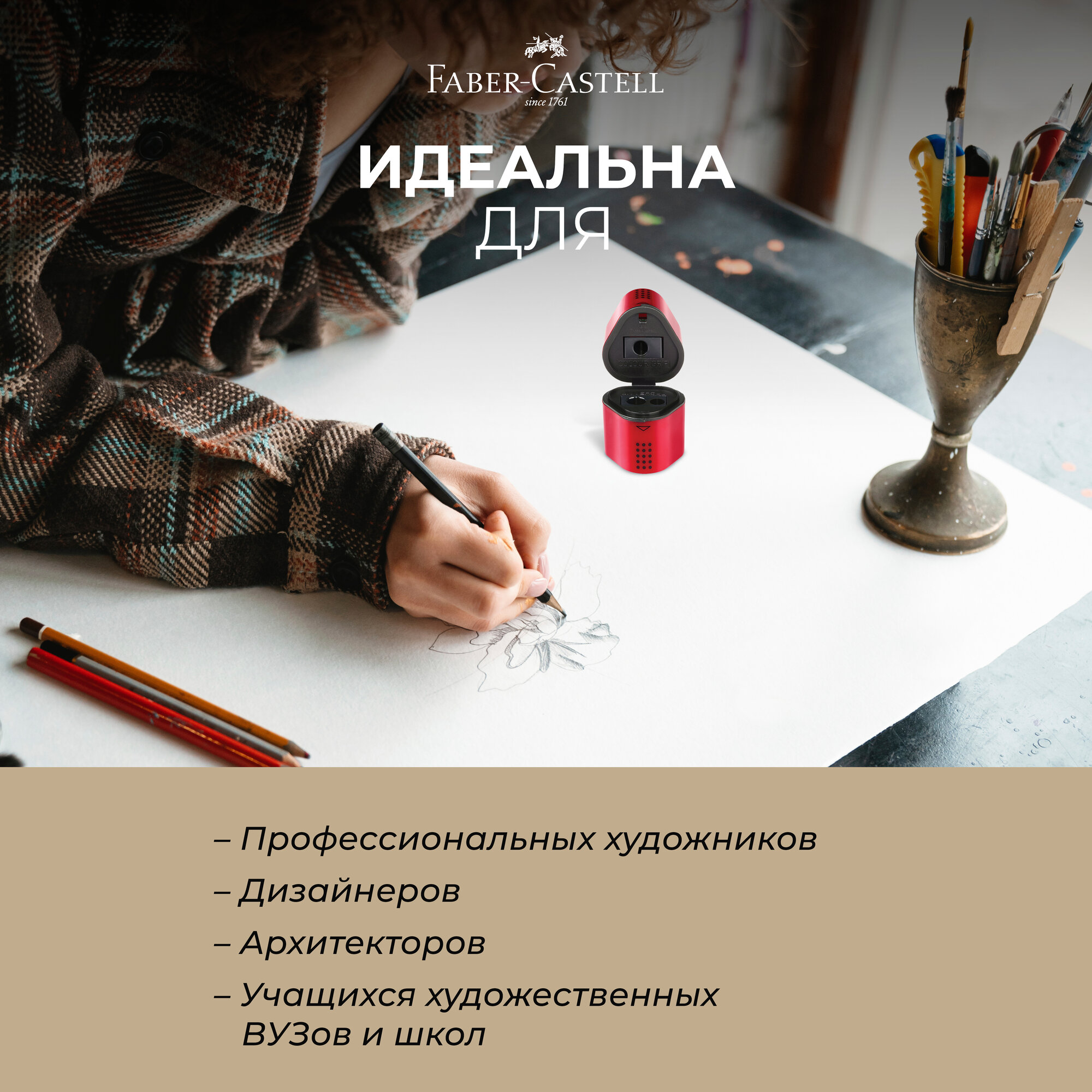 Точилка FABER-CASTELL «Trio Grip 2001», 3 отверстия, 2 контейнера, пластиковая, красная/синяя