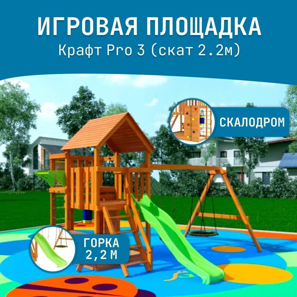 IGRAGRAD детская площадка Крафт Pro 3 со скатом 2.2 м (спортивно-игровая площадка для дачи и улицы)