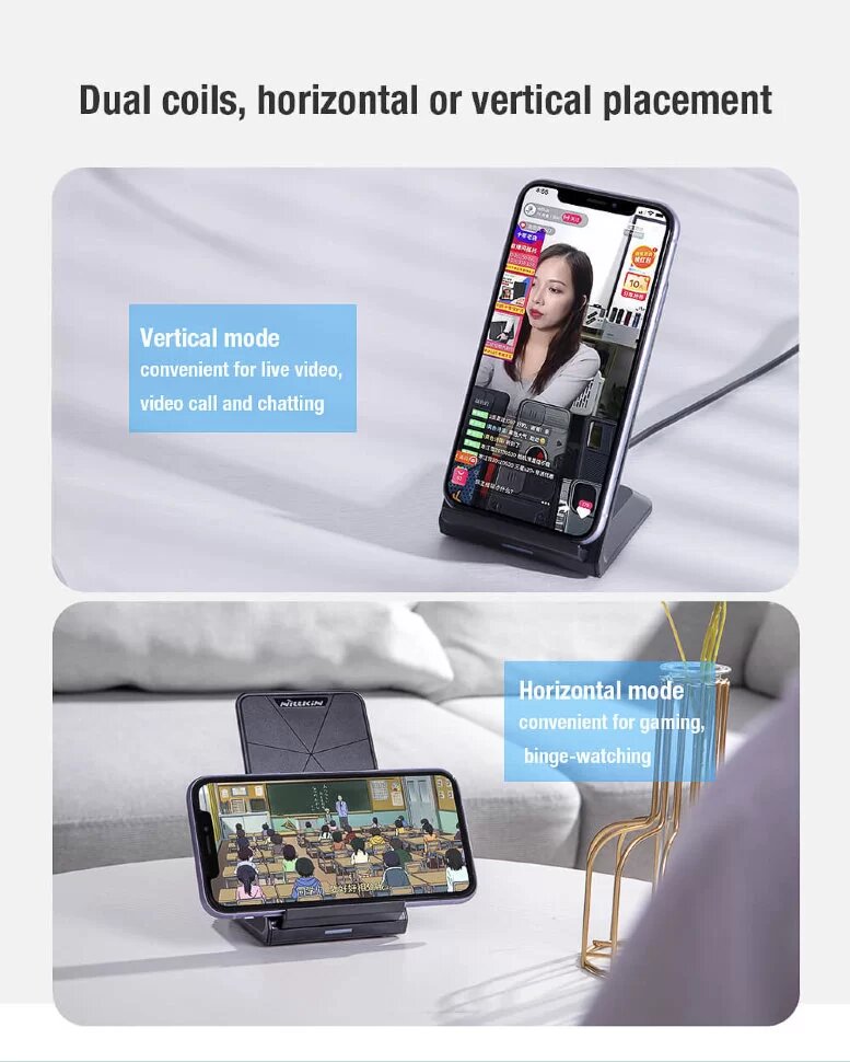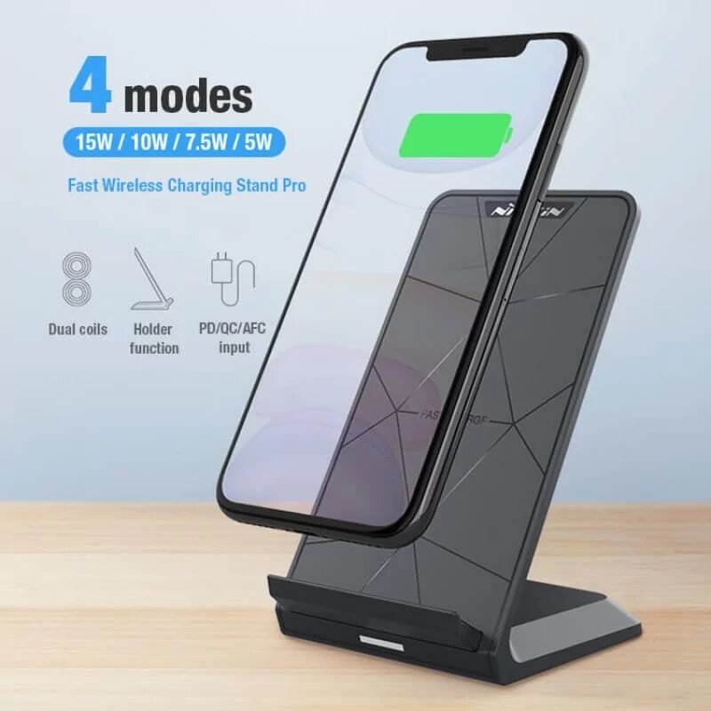 Беспроводное зарядное устройство-подставка QI быстрое quick charge 15W Nillkin Stand Pro для телефона Айфон, Самсунг, Андроид интересное: