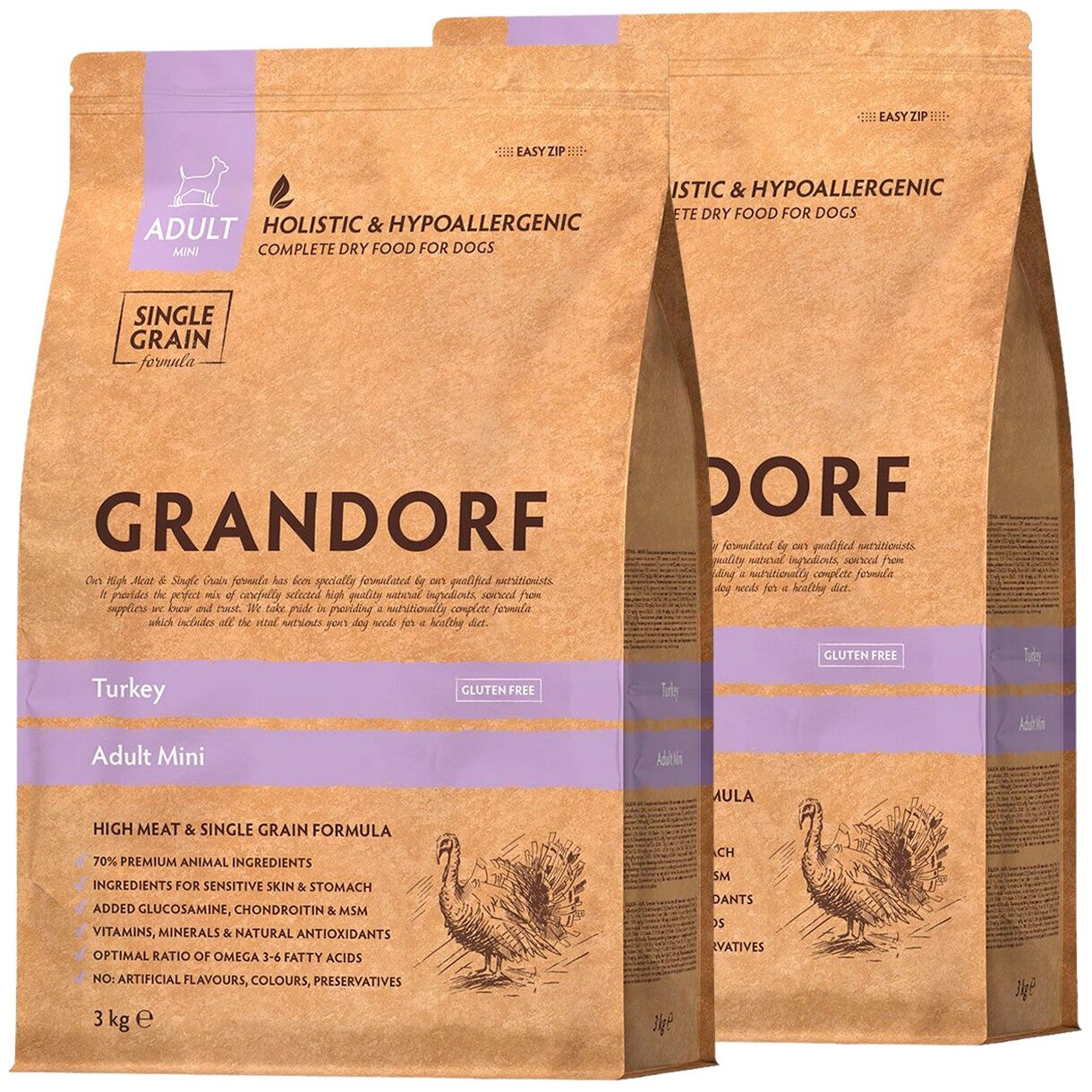 Купить GRANDORF SINGLE GRAIN DOG ADULT MINI TURKEY низкозерновой для взрослых собак маленьких пород с индейкой (3 + 3 кг)