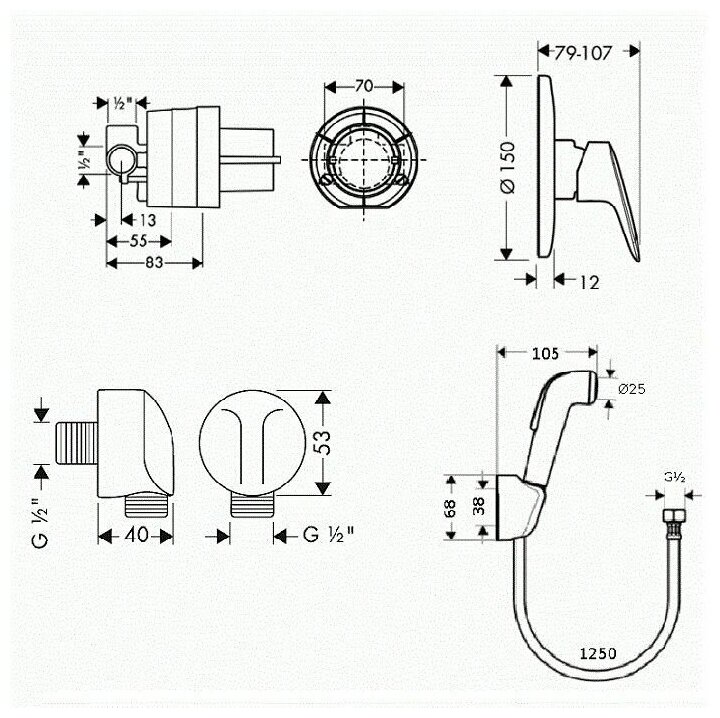 Смеситель с гигиеническим душем Hansgrohe SetLogisG (71604000 + 13620180 + 27454000 + 32127000)