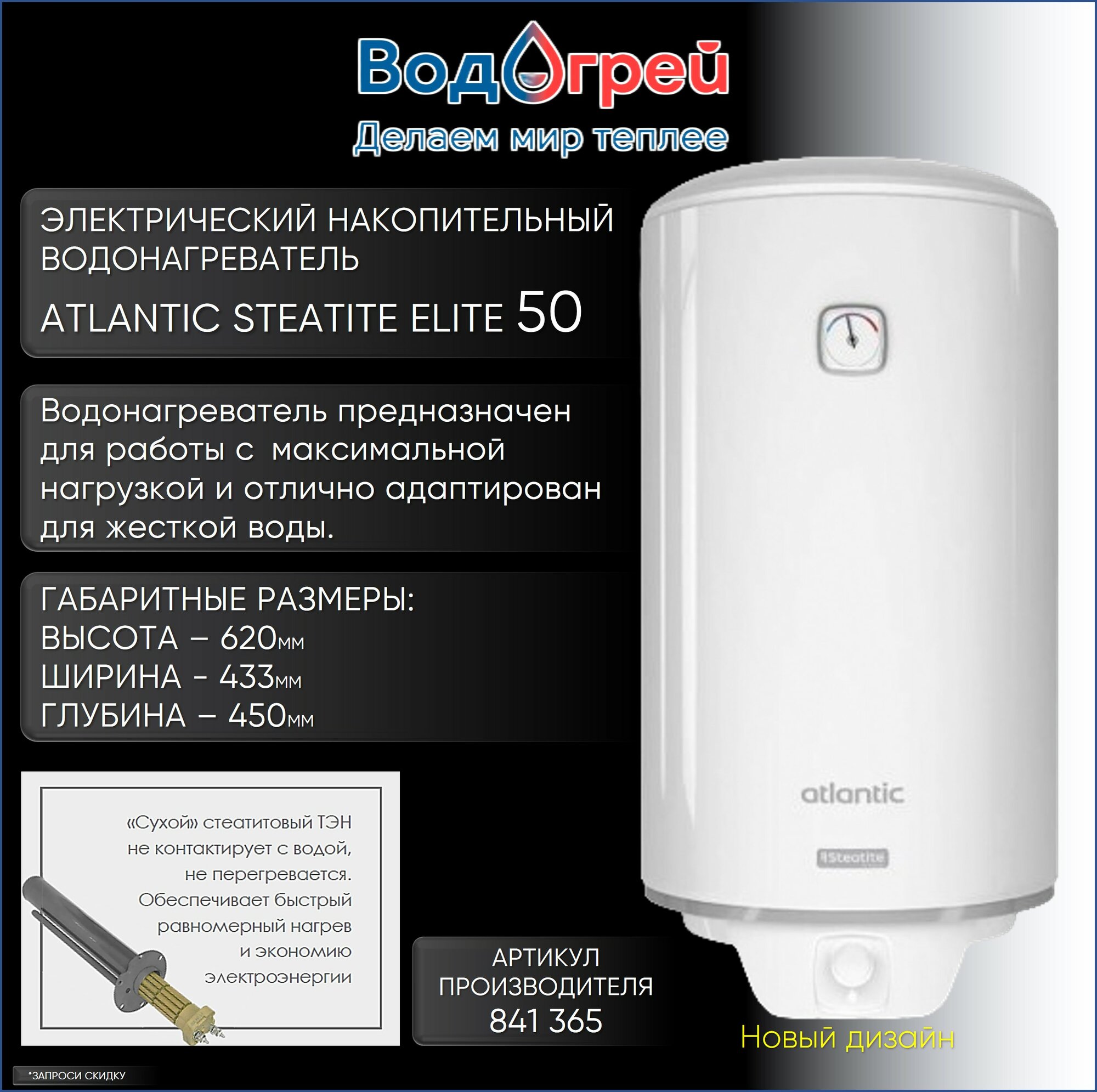 Электрический накопительный водонагреватель 50 л Atlantic Elite Steatite 841316