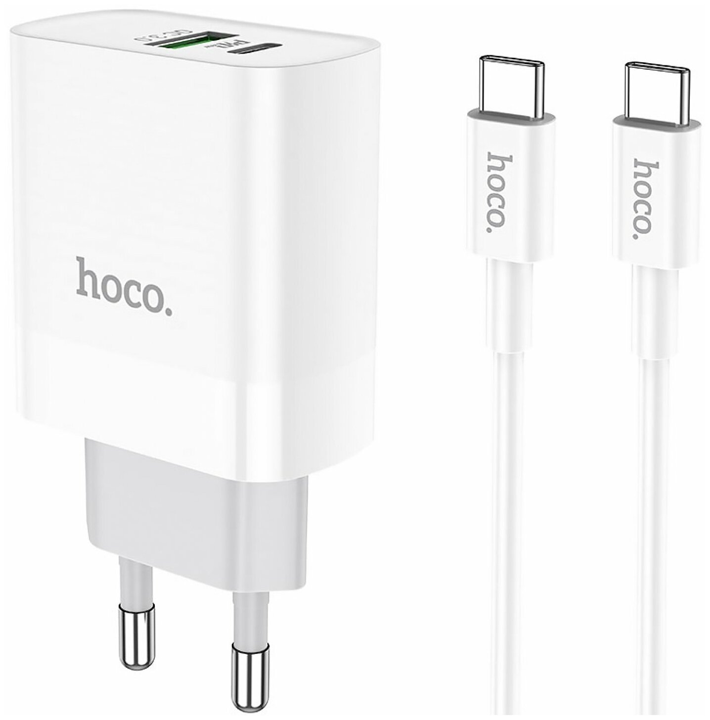 Сетевое зарядное устройство Hoco C80A, USB+Type-c, кабель Type-C To Type-C, PD20W, QC18W, белое