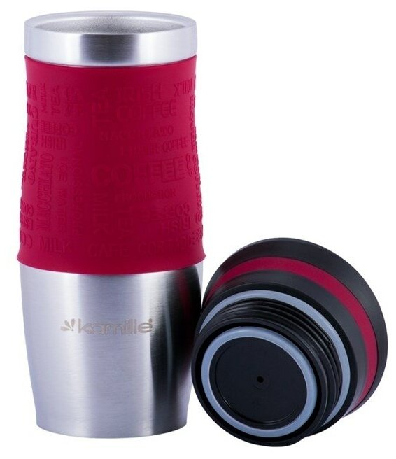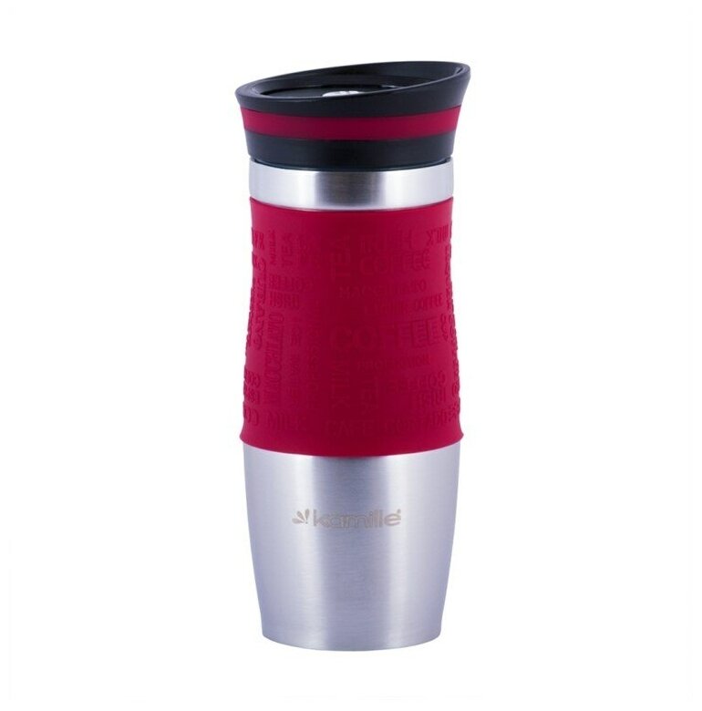 Термокружка 380 мл. из нержавеющей стали Kamille KM-2069 с TPR-вставкой (2069 / красный)