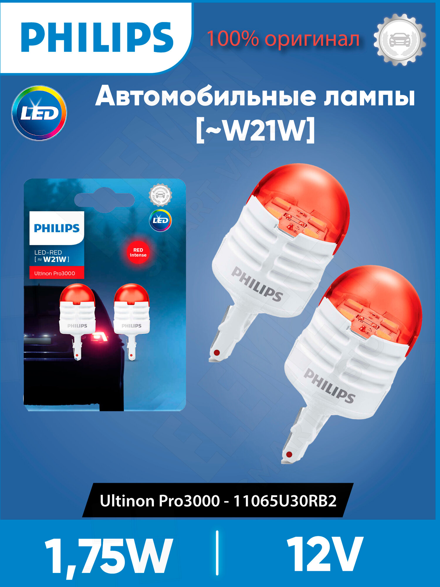 Лампа светодиодная Philips Ultinon Pro3000 SI W21W 12В 1,75Вт W3x16d красный, 2 шт. (блистер)