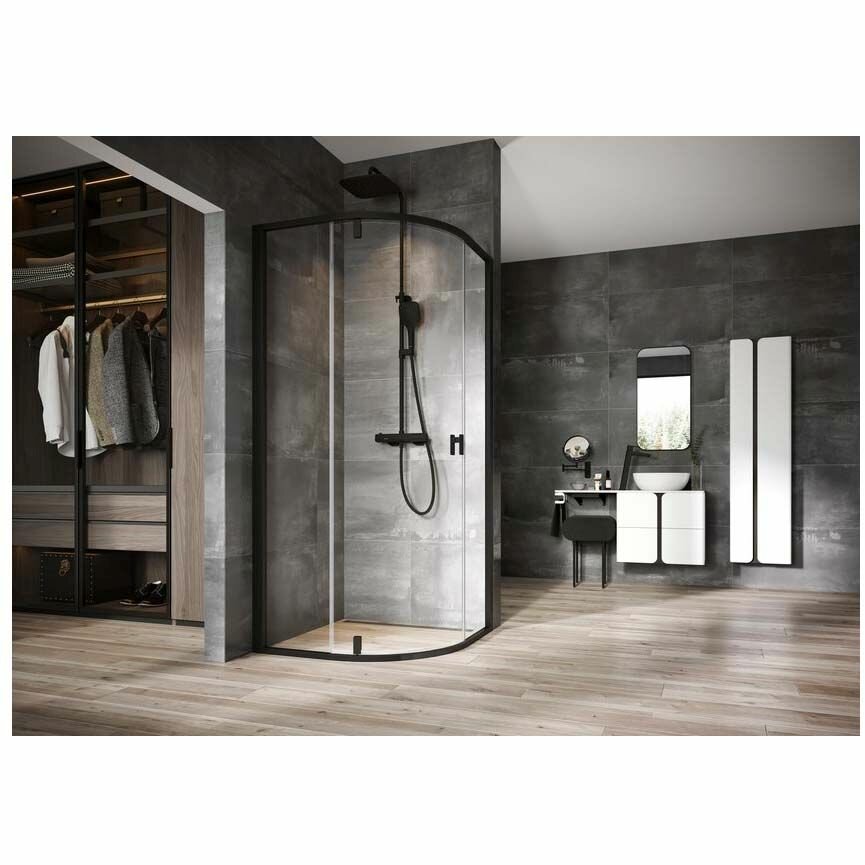 Душевая стойка, верхний душ 25х25 см, с термостатом без излива RAVAK 10° Free black, чёрный матовый. X070160
