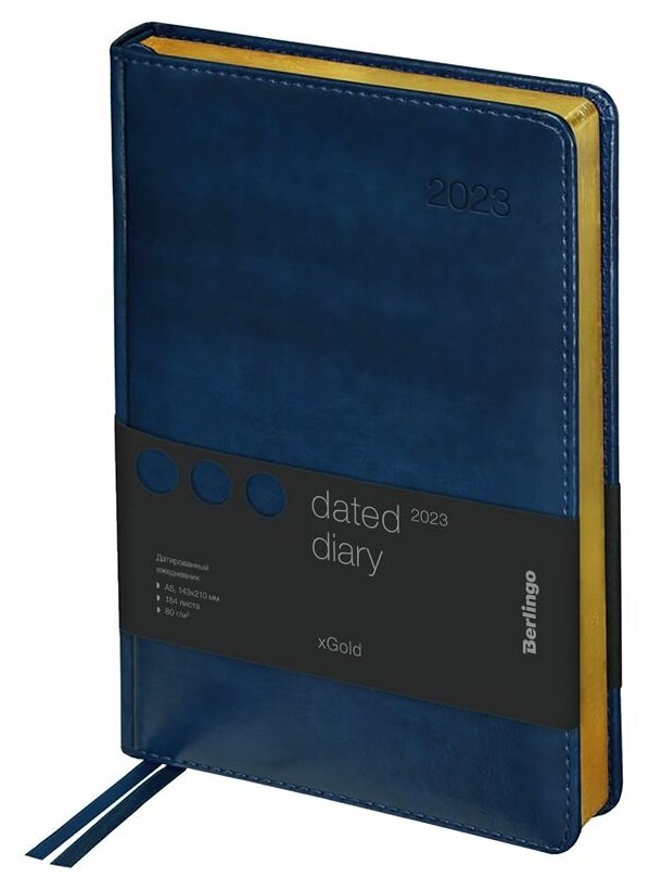 Berlingo 341380 Ежедневник датированный 2023 г., А5, 184 л., кожзам, Berlingo "xGold", зол. срез, синий