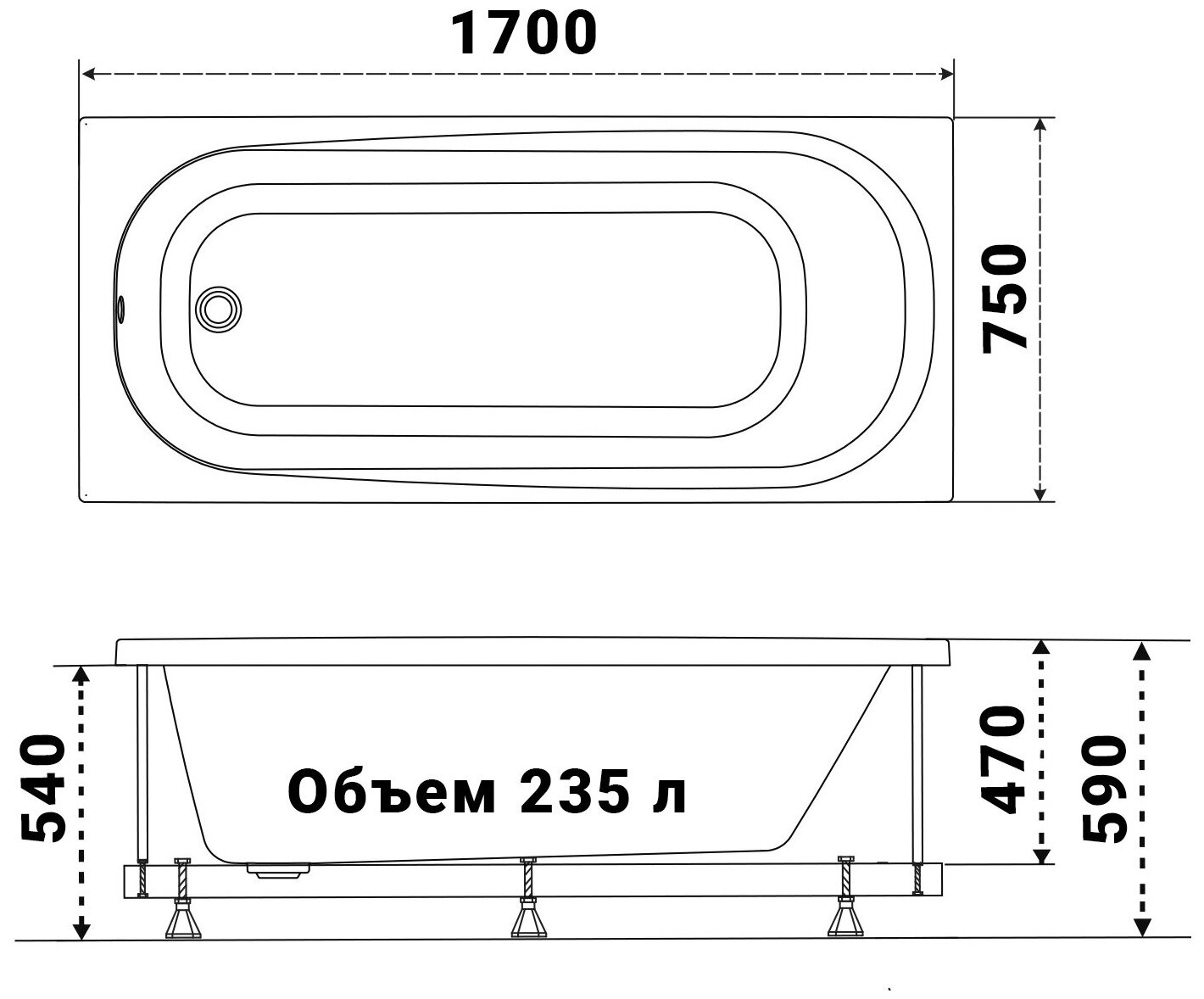 Ванна Triton Дина 170 x 75 см без каркаса интересное: