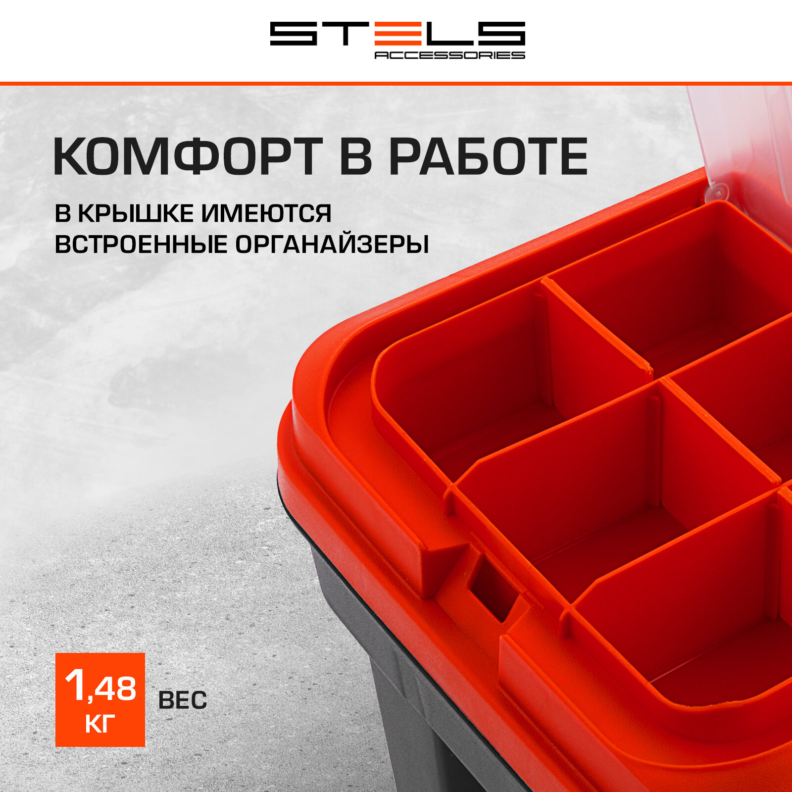 Ящик с органайзером Stels 90704, 41x22x18 см, 17'' , серый