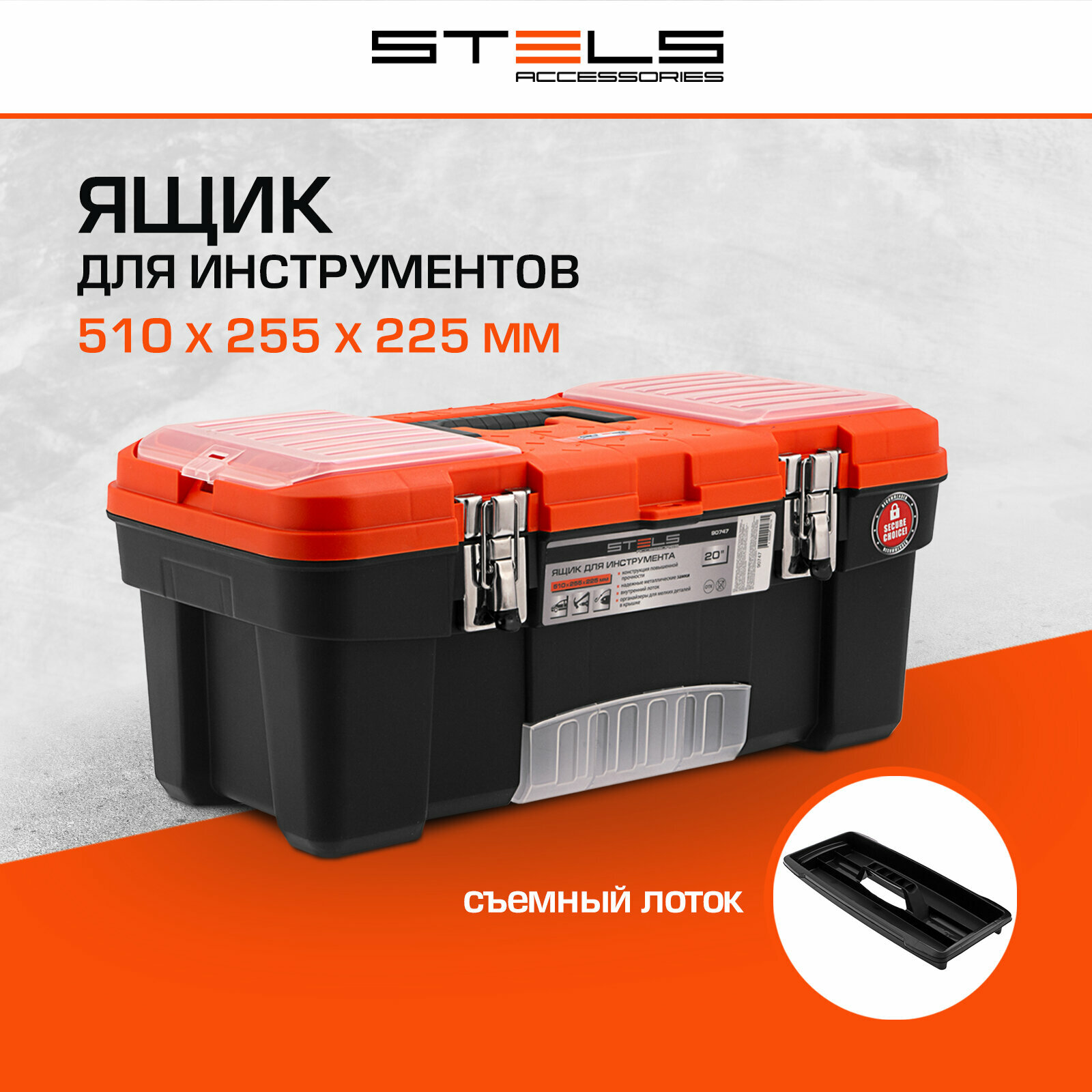Ящик для инструмента с мет. замками 20", 510х255x225 мм Россия// Stels