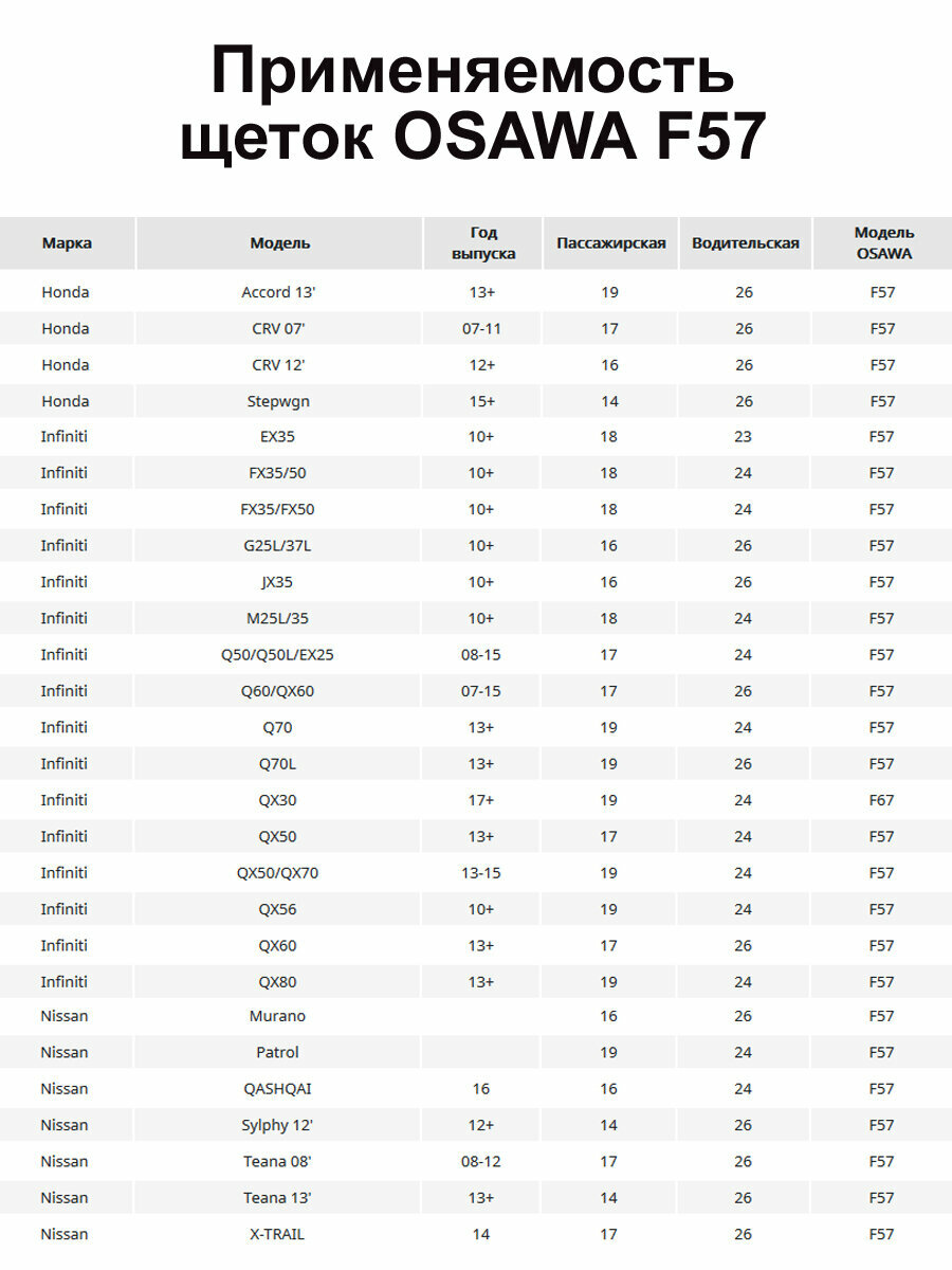 Щетка стеклоочистителя OSAWA F57-26 650 мм, 1 шт. (Nissan/Infiniti)