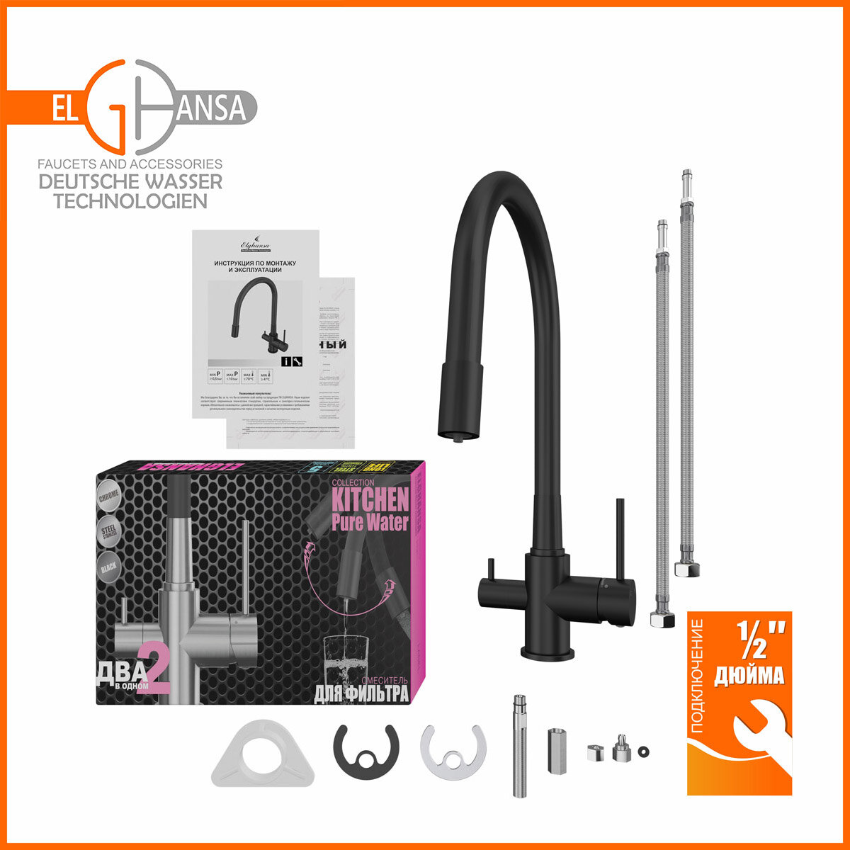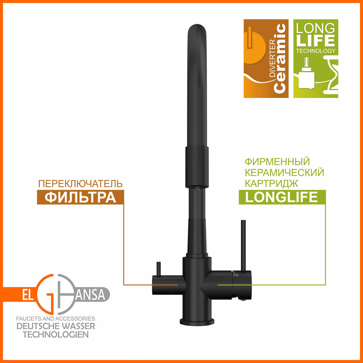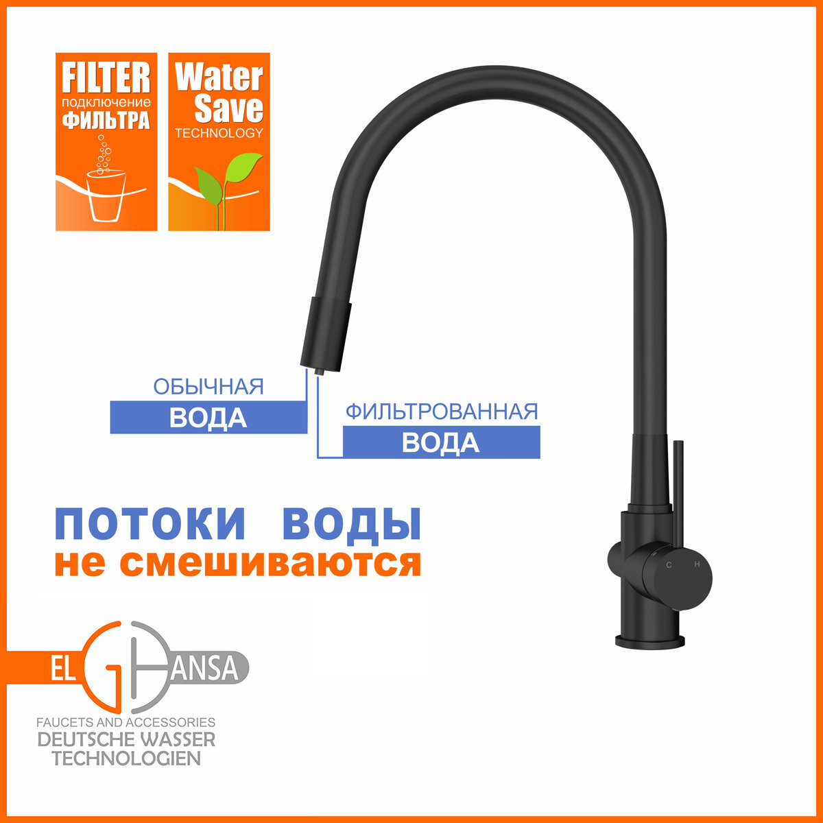 Смеситель для кухни ELGHANSA Kitchen Pure Water 56F5216-Black интересное: