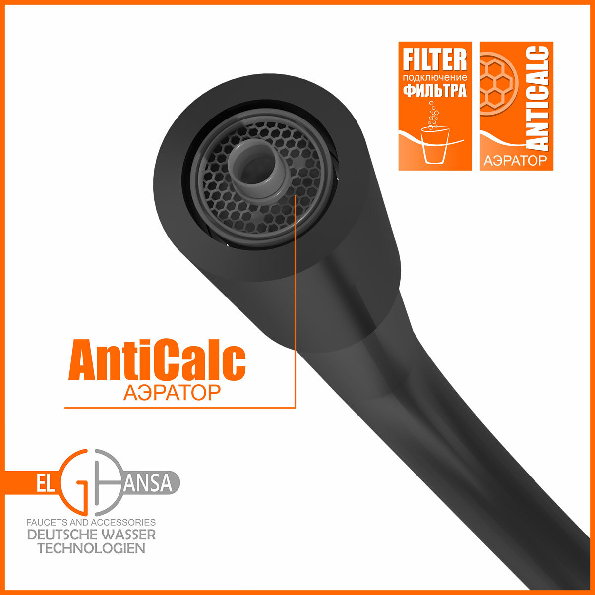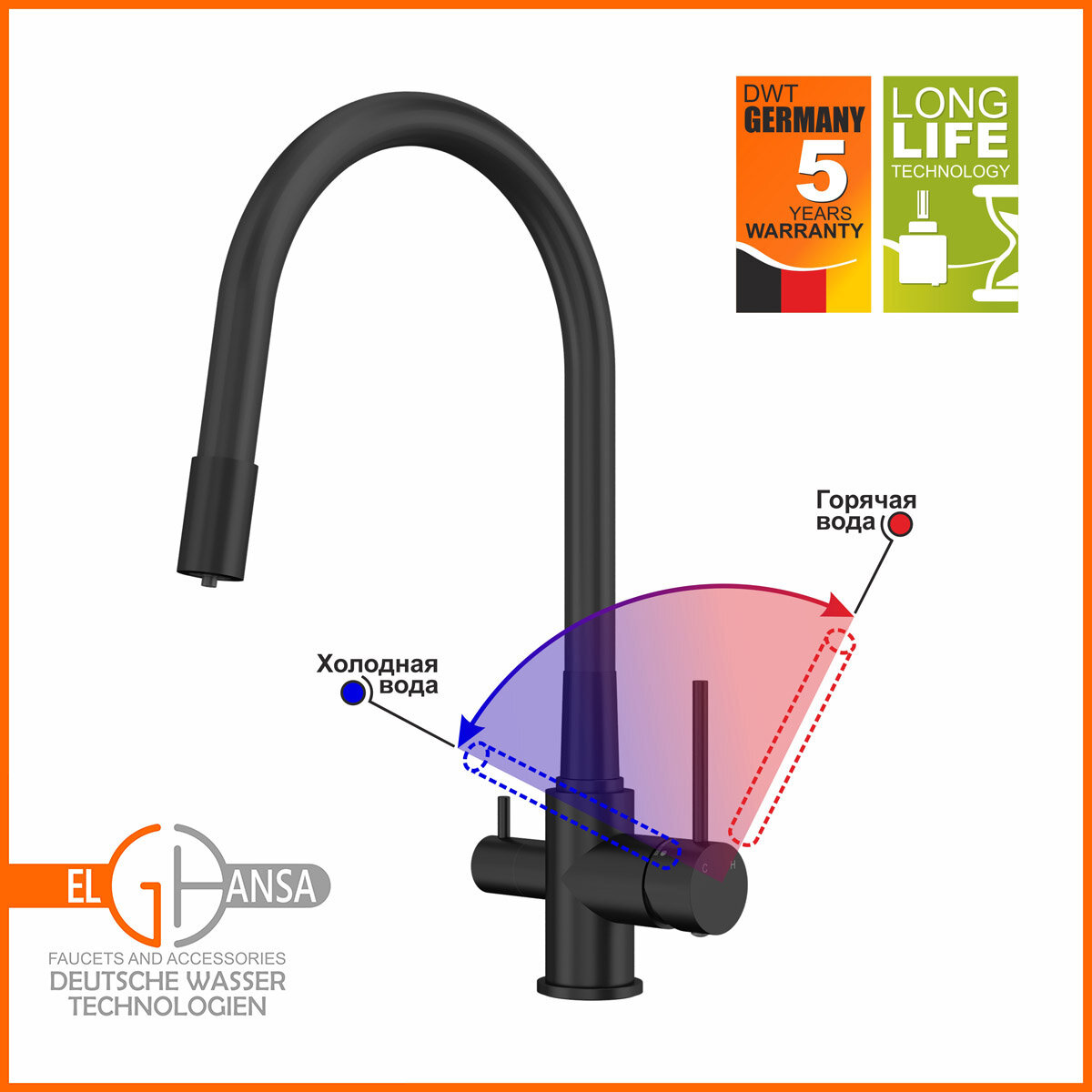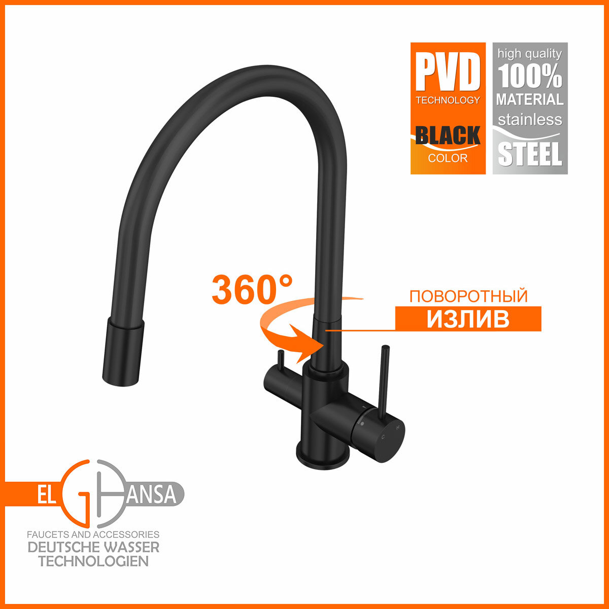 Смеситель для кухни ELGHANSA Kitchen Pure Water 56F5216-Black интересное: