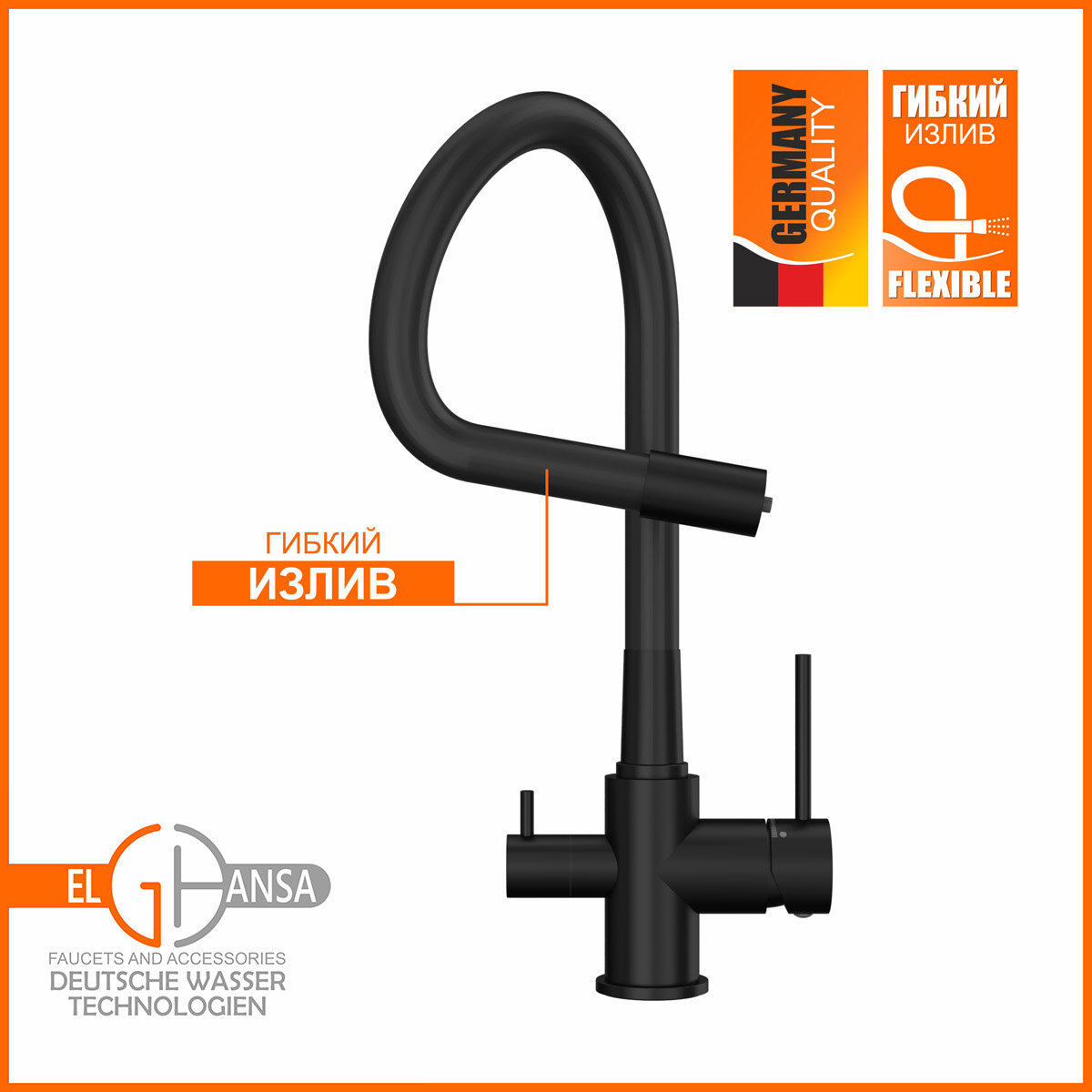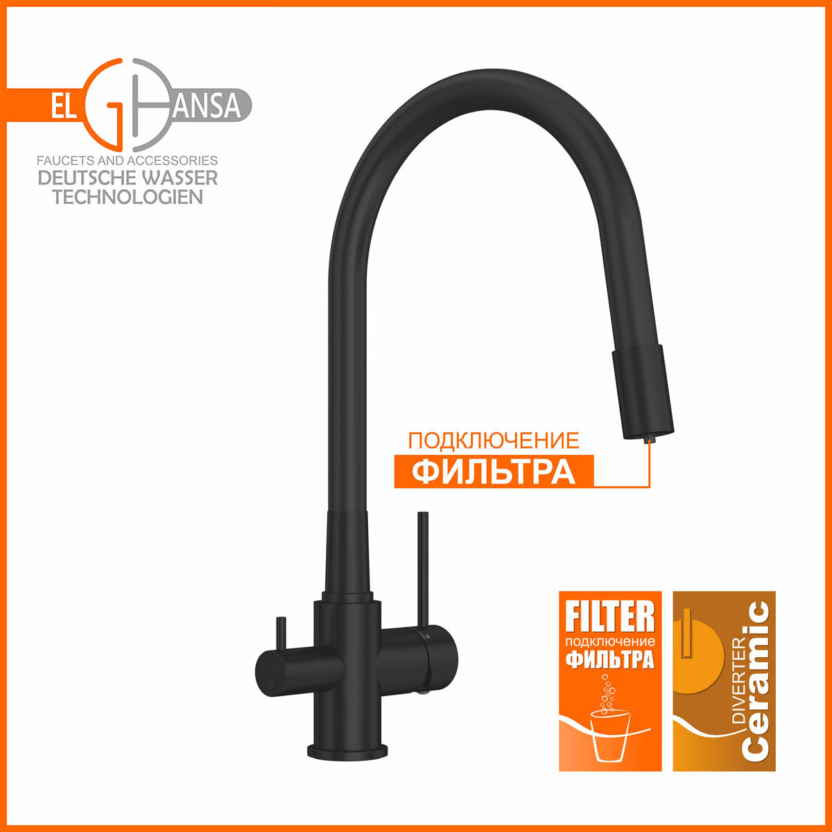 Смеситель Elghansa KITCHEN Pure Water 56F5216-Black для кухни (для фильтра) с гибким изливом