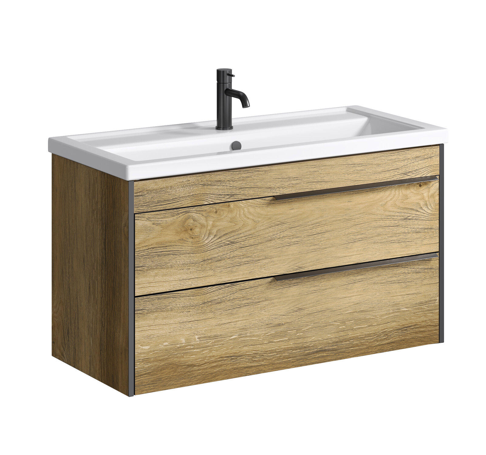 Тумба с раковиной Aqwella Fargo 100 2 ящика, дуб балтийский (FRG0110DB, 4640021065204)