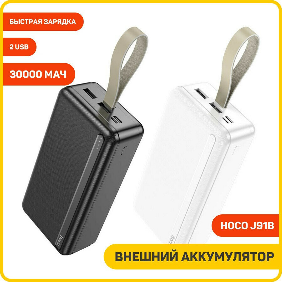 Универсальный Доп. Аккумулятор 30000mAh, J91B, HOCO, выход 2 USB (2.1A), вход Micro/Type-C, черный
