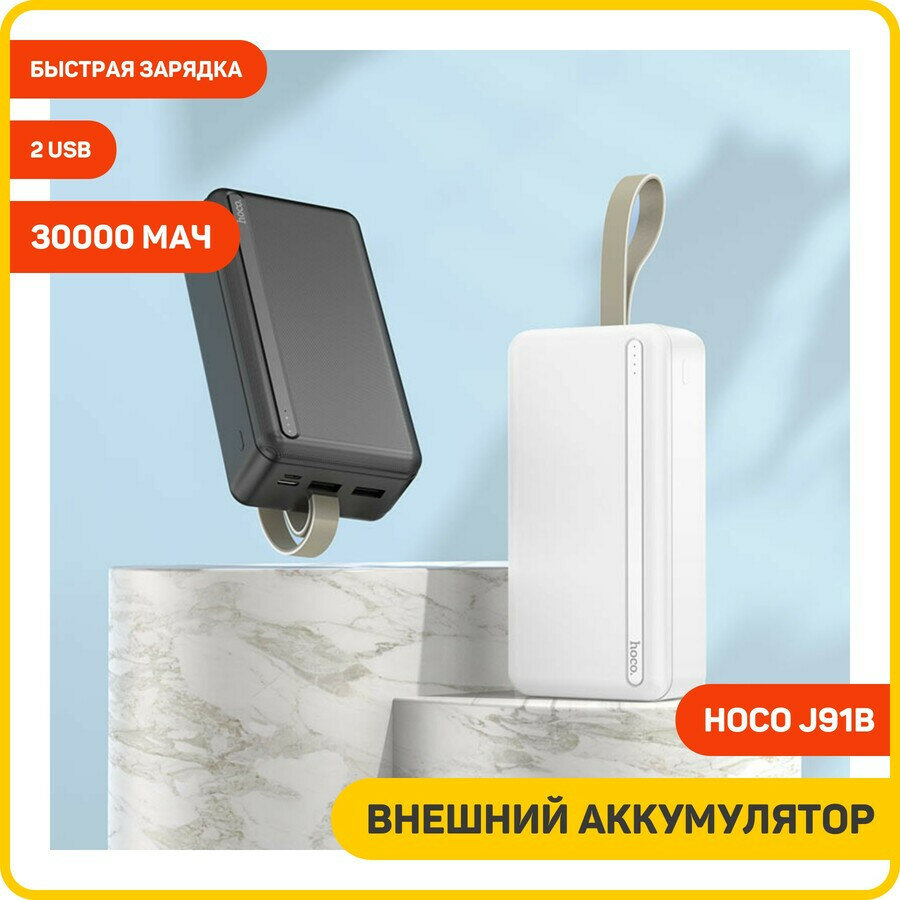 Портативный аккумулятор HOCO J91B, 2.1A, 30000 мА⋅ч, белый, светодиодный индикатор