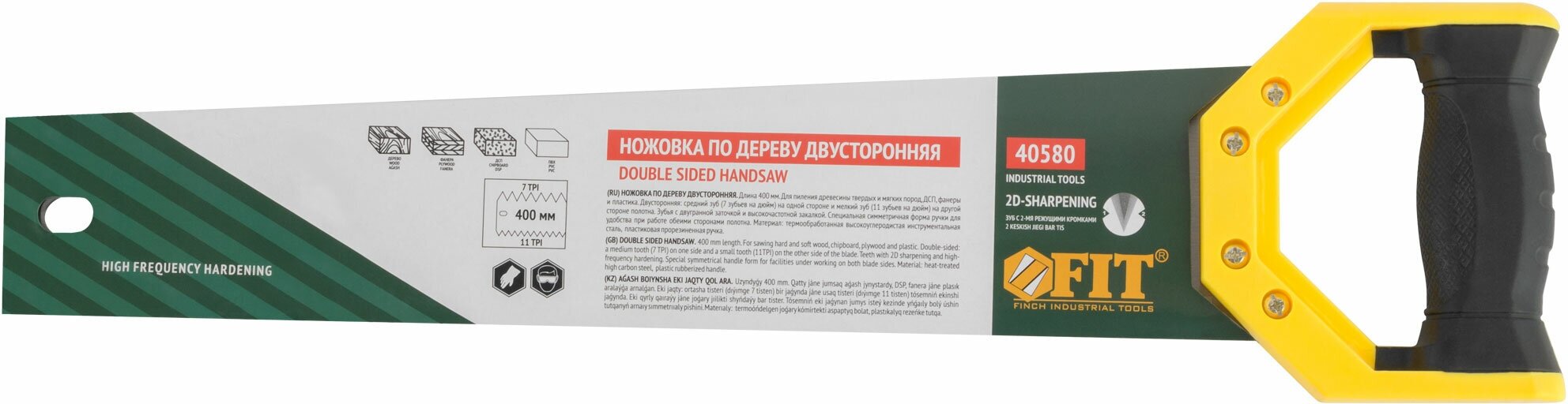 Ножовка по дереву Fit IT 40580 двухсторонняя, каленый средний/мелкий зуб 7 TPI /11 ТPI, 400 мм