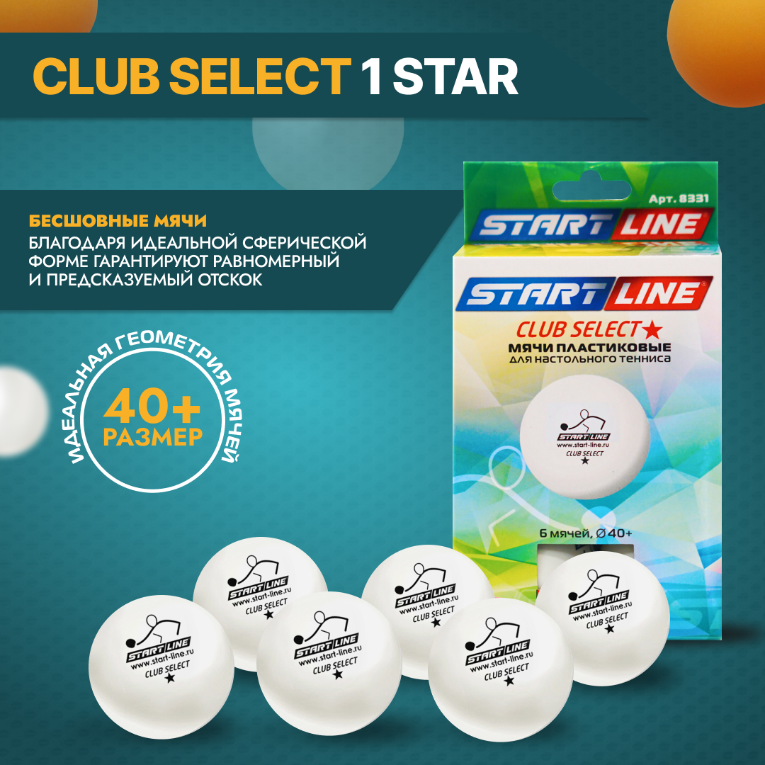 Мяч для настольного тенниса Start line Club Select, 1 звезда, набор 6 шт., цвет белый