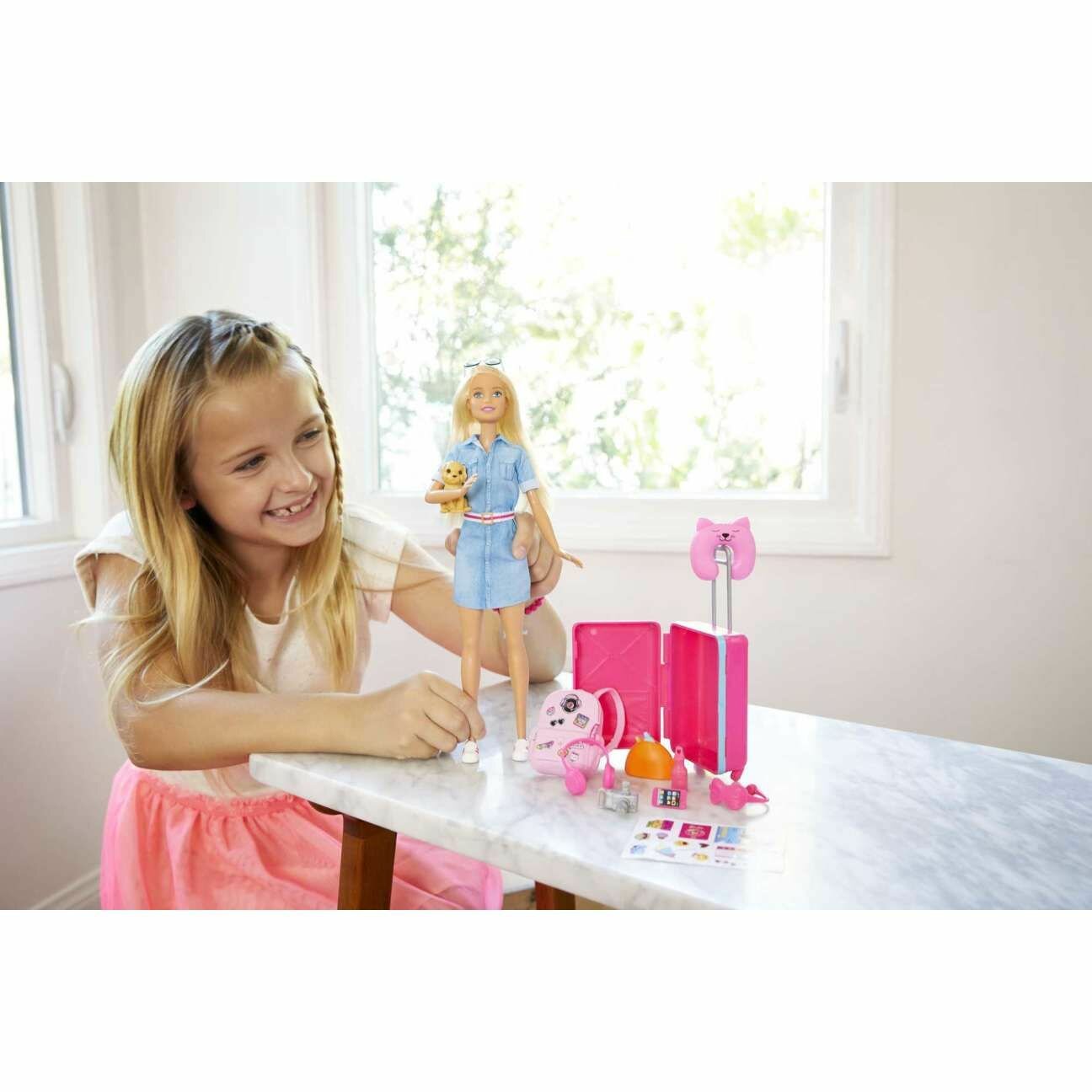 Кукла Mattel Barbie - Барби-путешественница Блондинка со щенком и чемоданом - Барби FWV25
