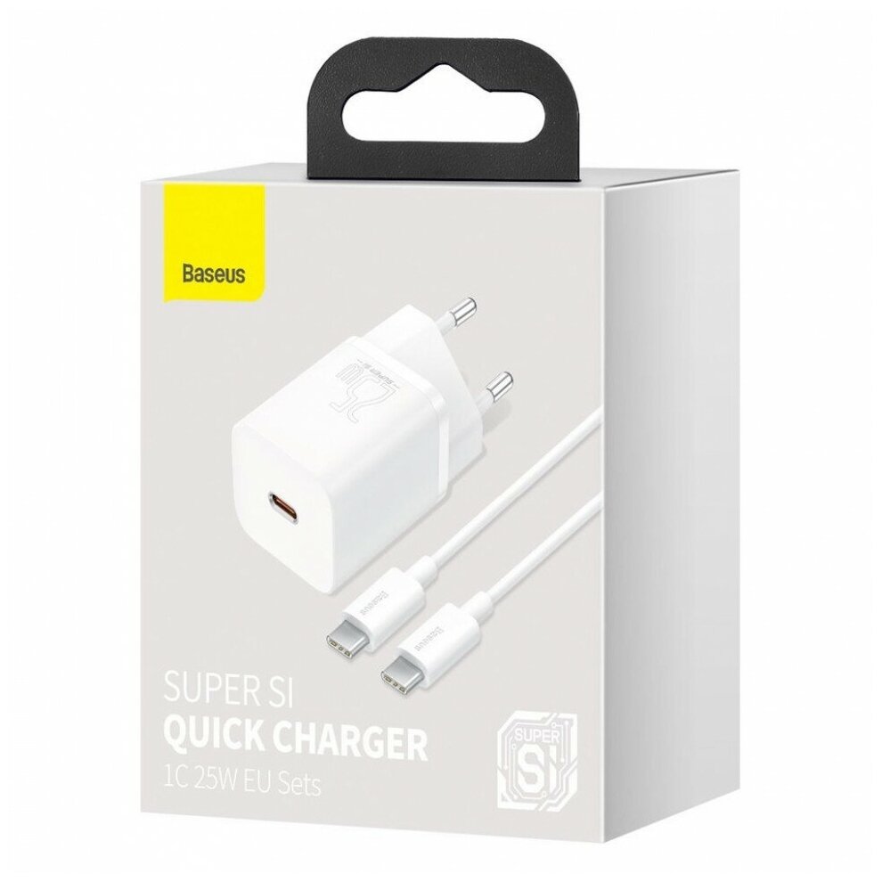 Быстрое сетевое зарядное устройство Baseus Super Si Quick Charge 3.0 Power Delivery 25W 3A + USB Type C - кабель USB Type C 3A 1м белый (TZCCSUP-L02) интересное: