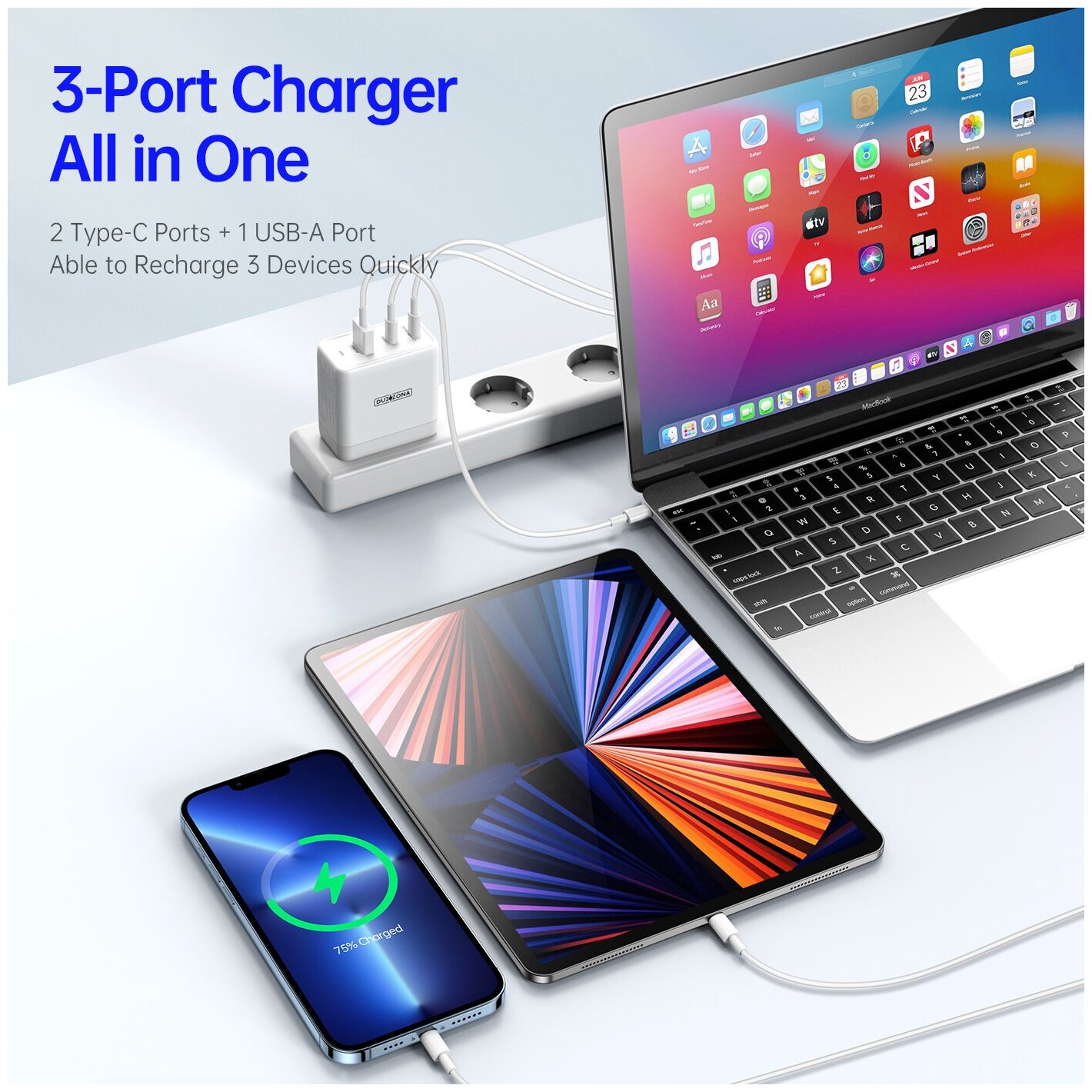 Сетевое зарядное устройство PD 65W 1A2C, DUZZONA, T1 series, белый интересное: