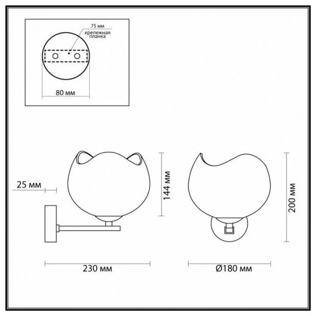 Светильник настенный, бра, настенный светильник, светильник настенный светодиодный,Odeon Light WATERLILY,4873/1W, E14, 40Вт,лампы:1 шт,2м2