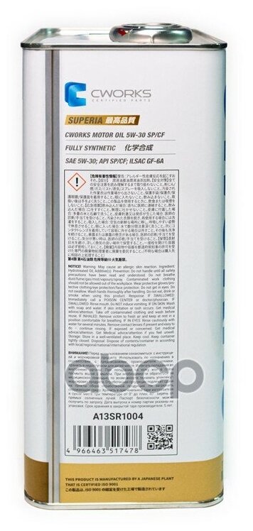 Масло моторное синтетическое CWORKS SUPERIA 5W30 API SP/CF ILSAC GF-6 1л CWORKS A13SR1001 | цена за 1 шт