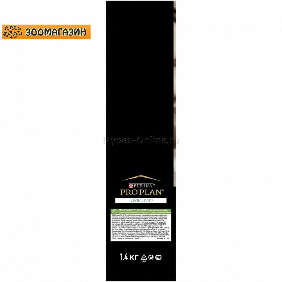 Корм для кошек PRO PLAN Liveclear sterilised для снижения аллергенов, с индейкой сух. 1,4кг