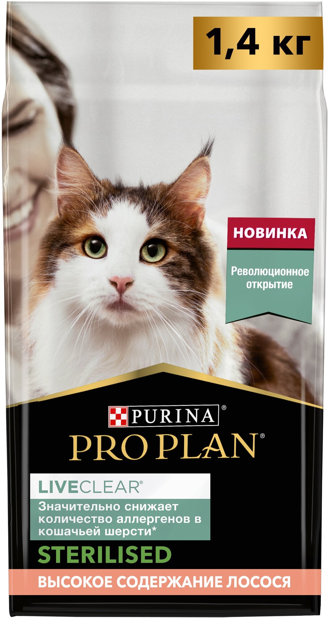 PRO PLAN LIVECLEAR для стерилизованных кошек, снижает количество аллергенов в шерсти, с лососем (1,4 кг)