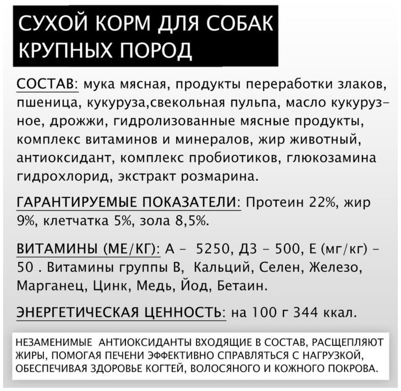 Сухой корм для собак крупных пород Dog`s Menu Large BREED 22/9, 10 кг интересное: