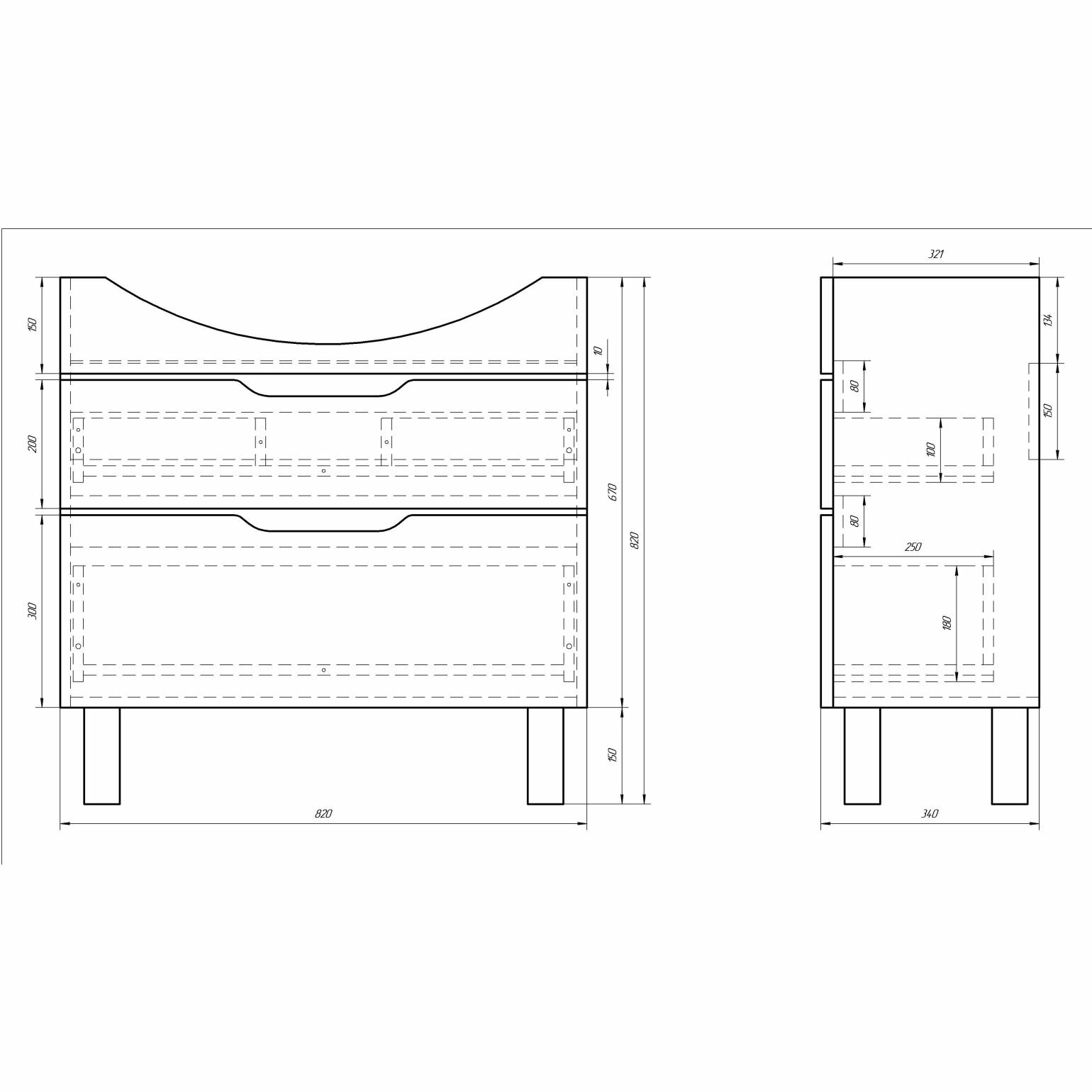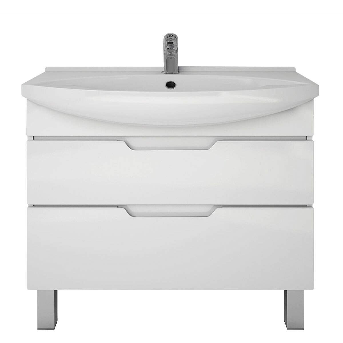 Тумба Dreja Laguna Plus 85, 99.0107, подвесная/напольная, 2 ящика, с опорами, белый глянец