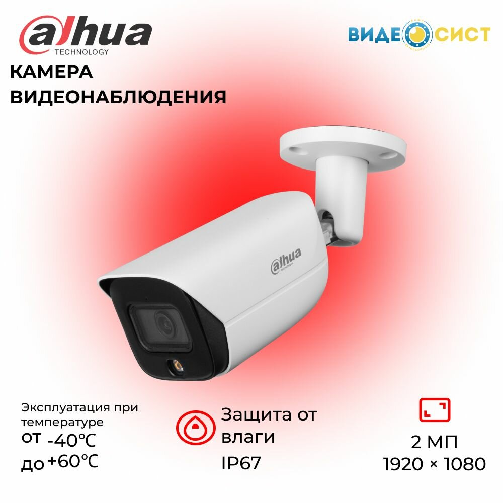 DAHUA DH-IPC-HFW3249EP-AS-LED-0360B Уличная цилиндрическая IP-видеокамера Full-color с ИИ 2Мп, 1/2.8” CMOS, объектив 3.6