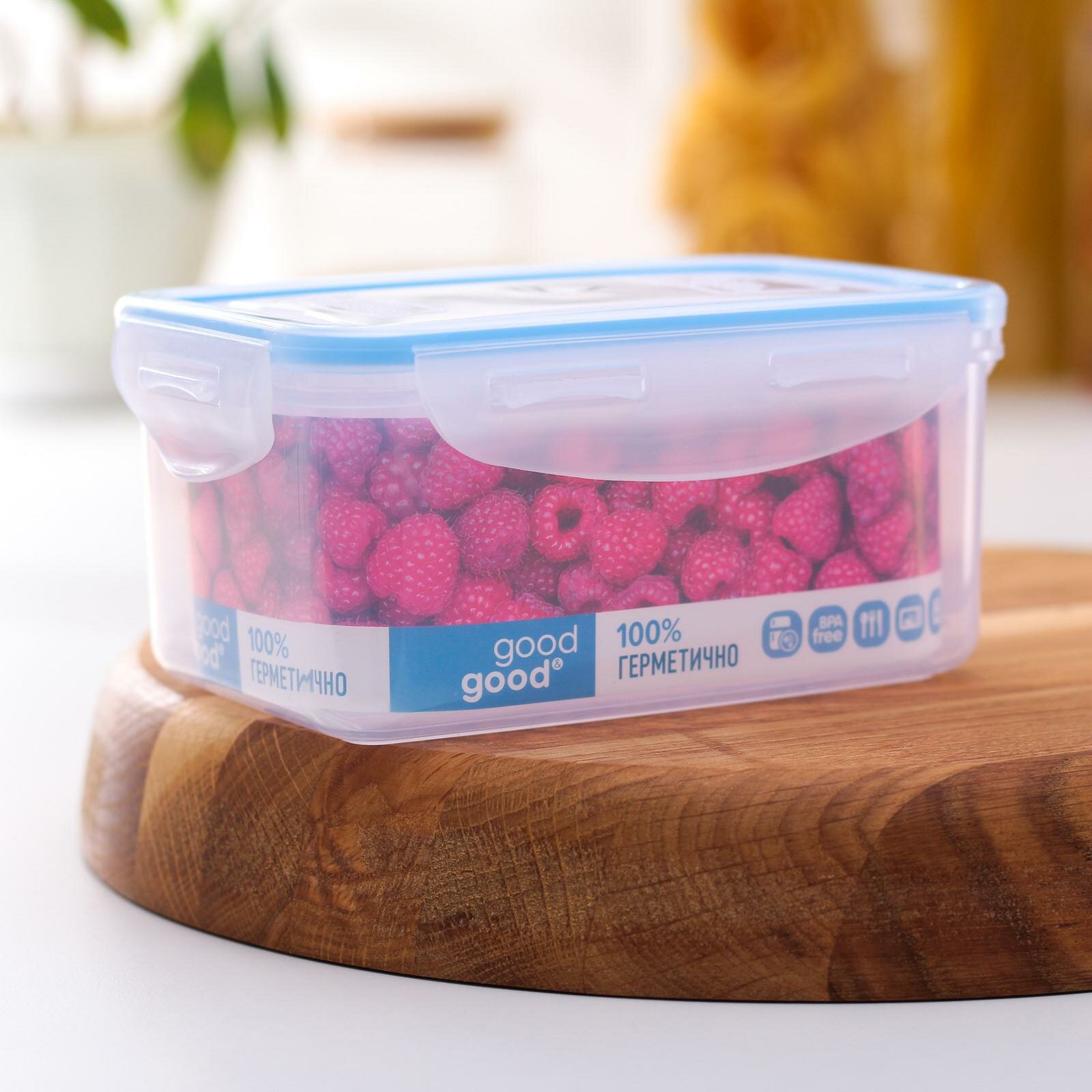 Контейнер пищевой Good & Good, 800 мл с герметичной крышкой, цвет прозрачный, материал пластик