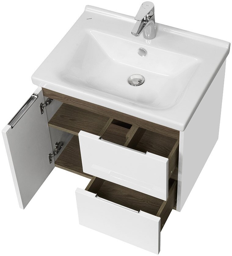 Купить Тумба под раковину Aquaton Рене 600 мм подвесная белый/грецкий орех (1.A258.5.01N.RC8.0)