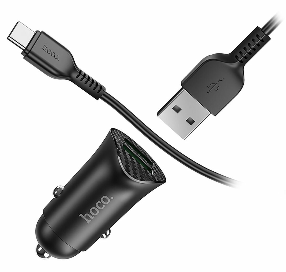 Автомобильное зарядное устройство Hoco Z39 Farsighted + кабель USB Type-C, 18 Вт, черный