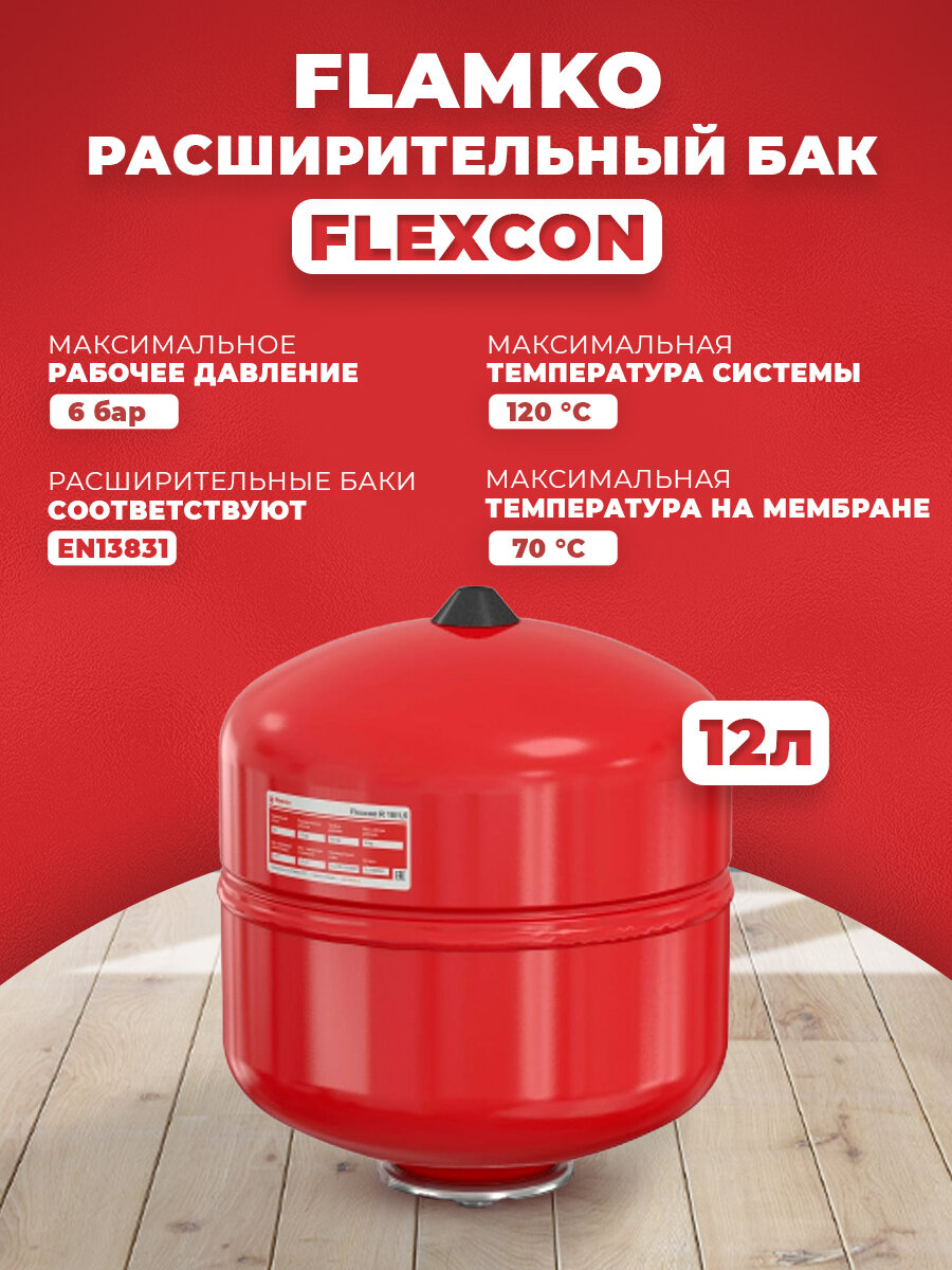 Бак мембранный д/отопления Flexcon R 12л 6атм Flamco 16014RU интересное: