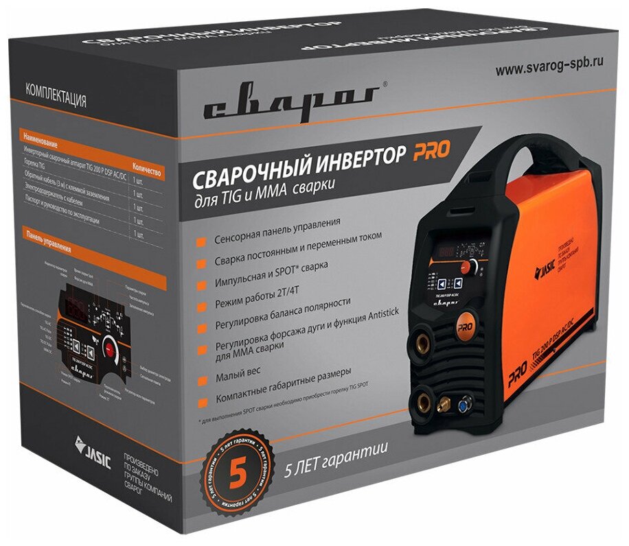 | Дополнительная информация | режим импульсной сварки, режим точечной сварки, 2Т/4Т режим работы, регулировка баланса полярности, регулировка времени спада тока, регулировка времени нарастания тока, регулировка форсажа дуги. аттестация НАКС |