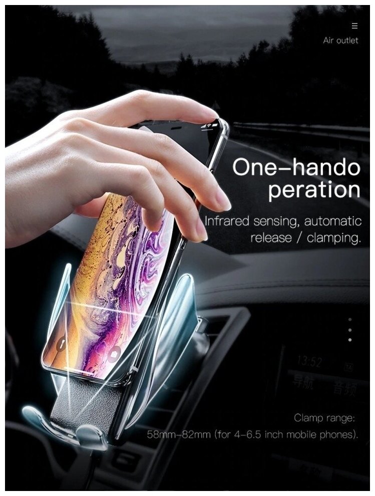 Автомобильный держатель HOCO CA34 с беспроводной зарядкой и автоматической фиксацией золотой интересное: