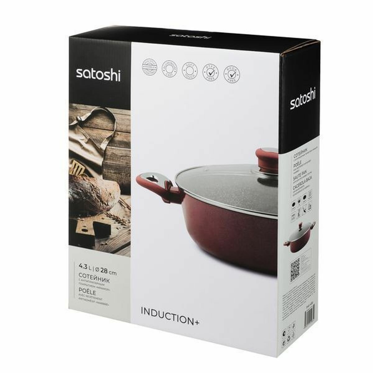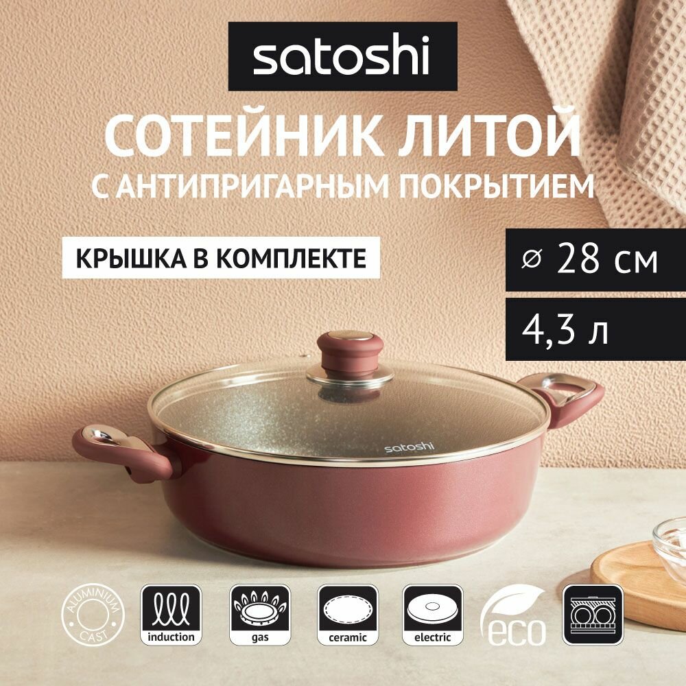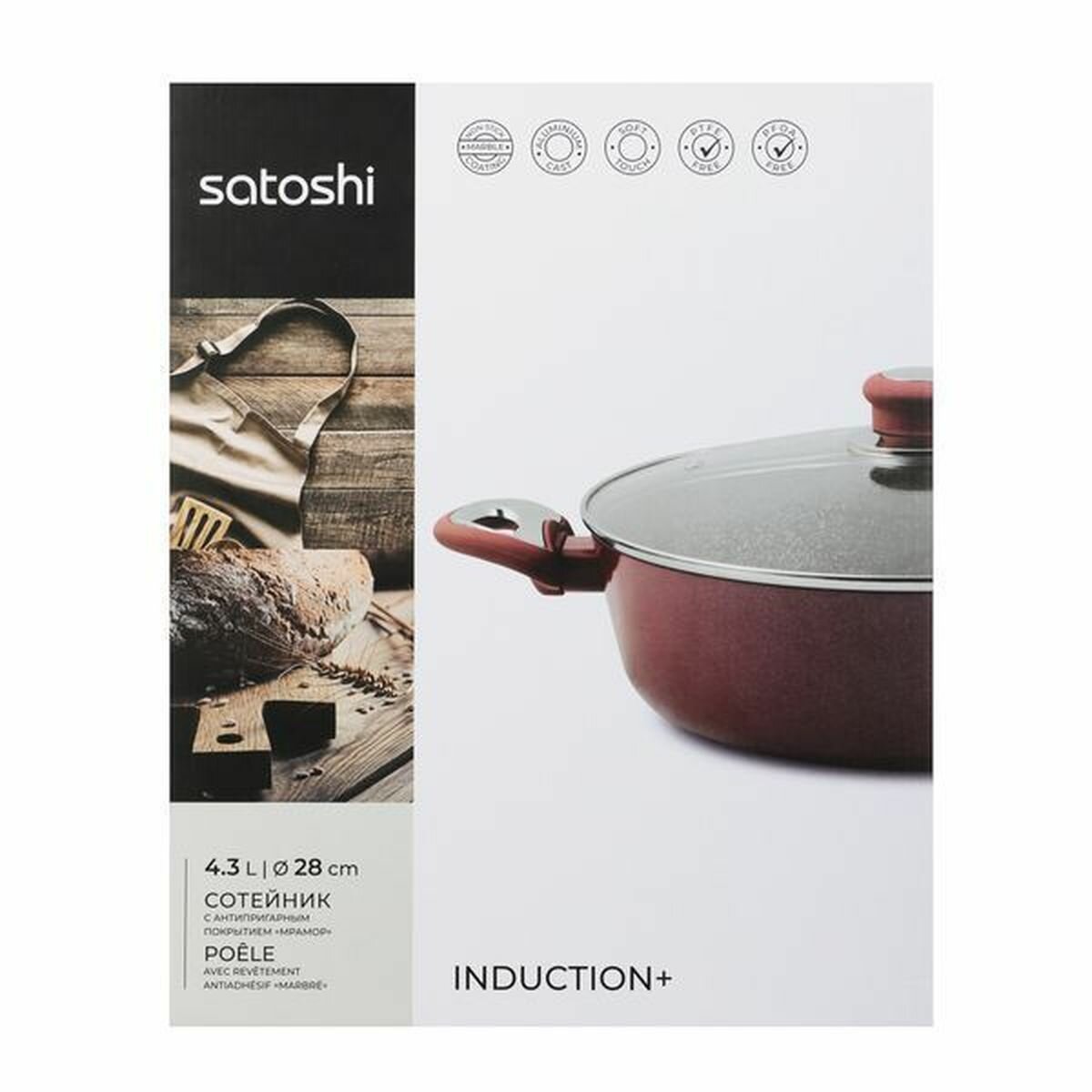 SATOSHI Ла Мери Сотейник литой 4,3л d=28х8см, с крышкой, антипригарное покрытие мрамор, индукция интересное: