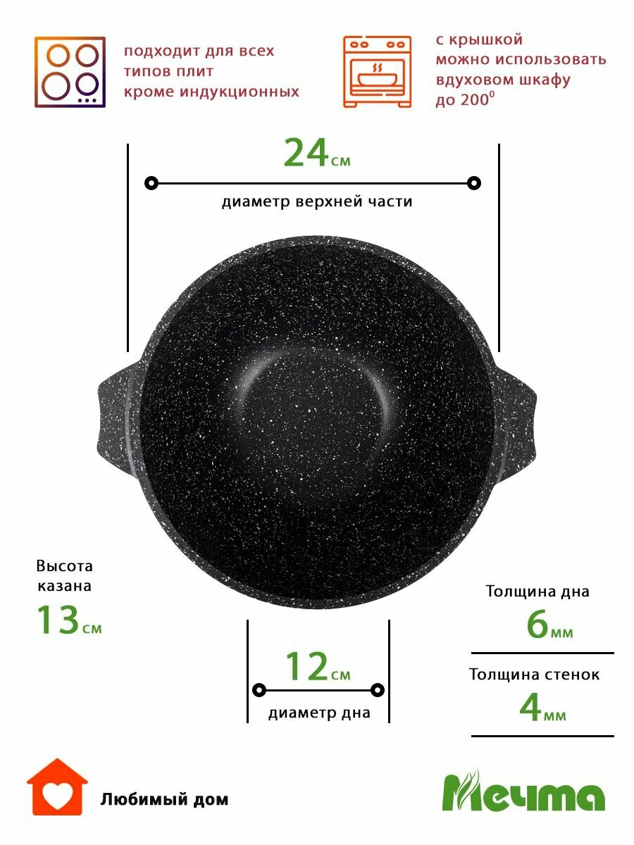Казан Мечта 4,0 л для плова АП гранит BLACK 54802
