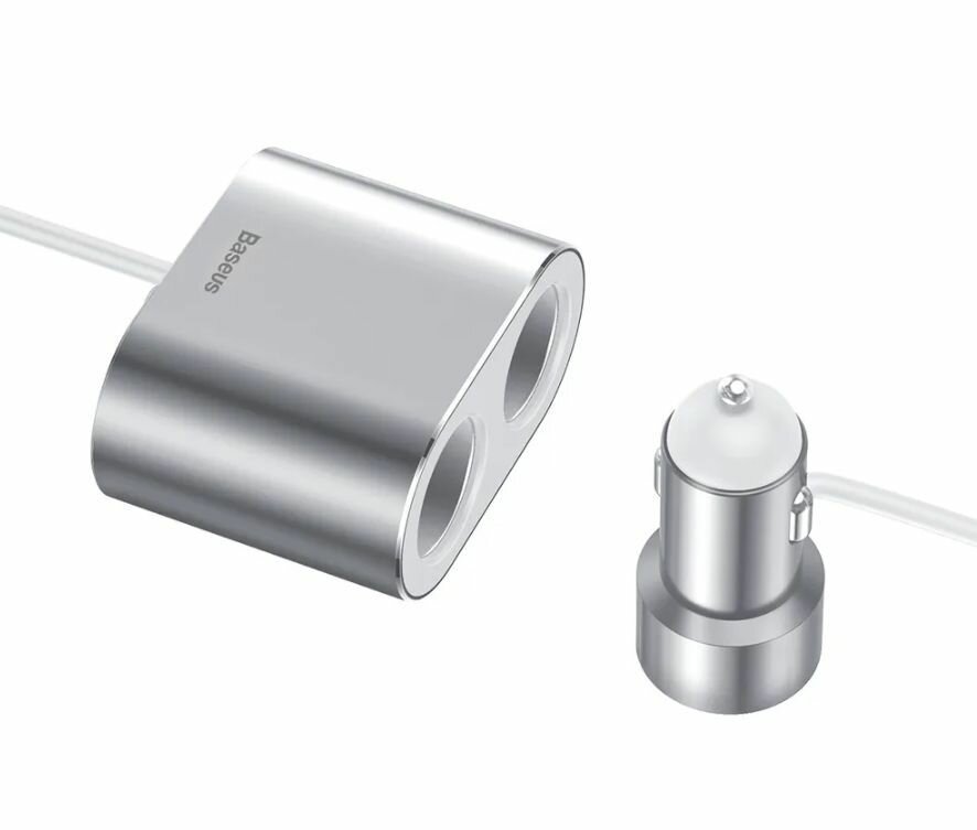 Автомобильное зарядное устройство BASEUS High Efficiency, 2*USB + разветвитель 2*прикуриватель, 3.1A, 100 Вт, серебряный