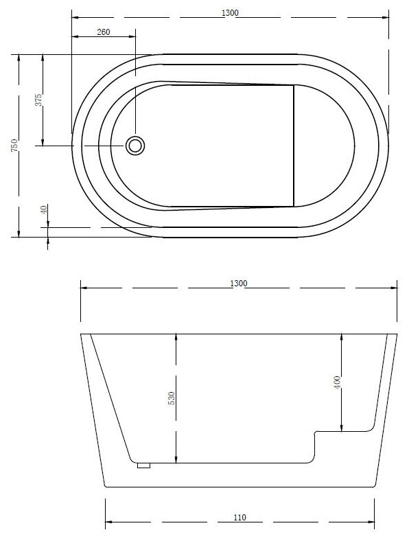 Акриловая ванна Abber AB9277 130х75 без гидромассажа