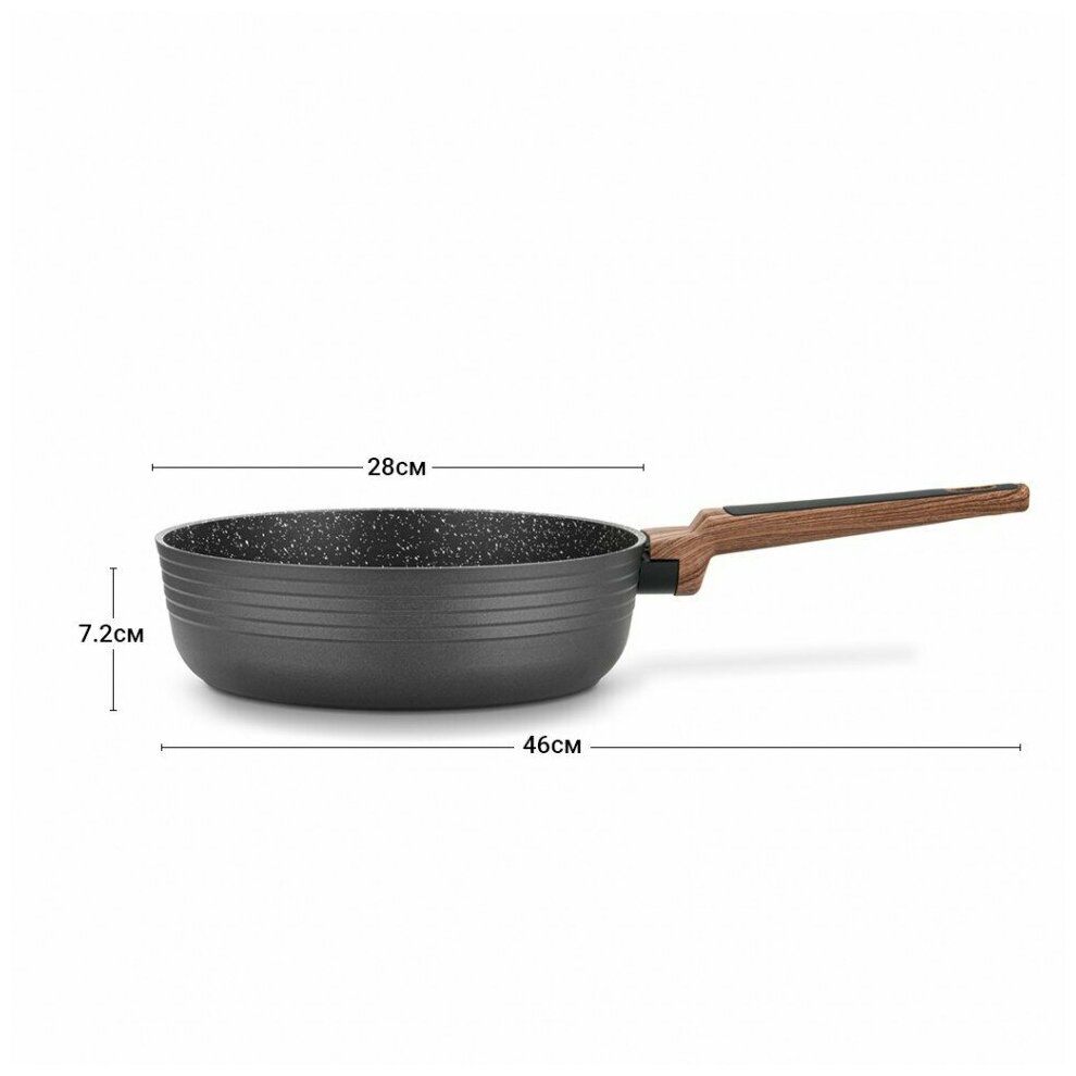 14306 FISSMAN Глубокая сковорода DIAMOND 28x7,5см (алюминий с антипригарным покрытием Greblon C3+) Бакелит с покрытием «софт-тач» с силиконовой вставкой; Индукция