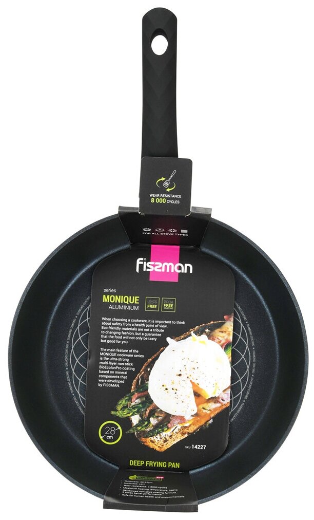 14227 FISSMAN Глубокая сковорода MONIQUE 28x7,5см (алюминий с антипригарным покрытием BioEcolonPro) Ручка-бакелит с покрытием «Софт тач»; Индукция