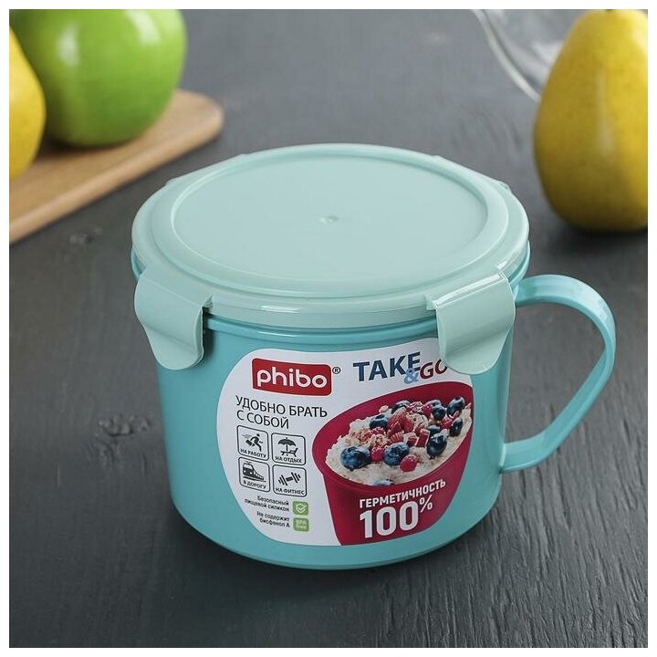 phibo Контейнер - кружка для холодильника и СВЧ Take & Go, 850 мл, цвет микс