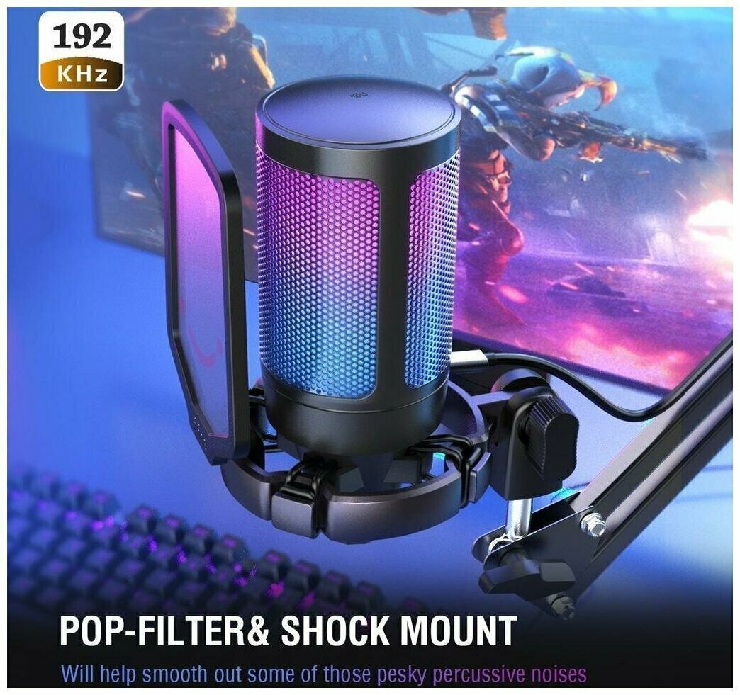 Конденсаторный USB Микрофон Fifine A6V Ampligame с RGB-подсветкой (Black)