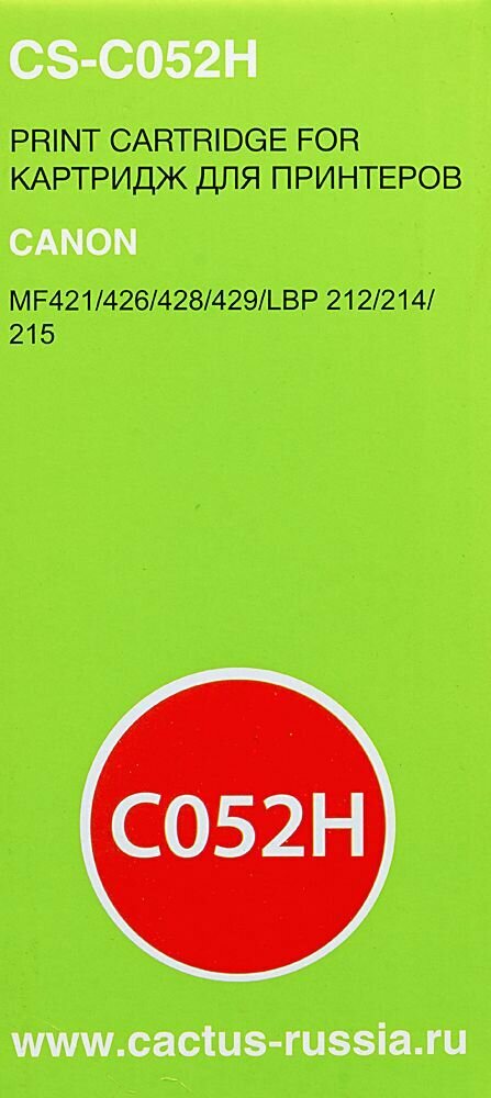 Картридж лазерный CACTUS (CS-C052H) для Canon MF421/426/428/429/LBP 212/214/215, ресурс 9200 страниц В комплекте: 1шт.