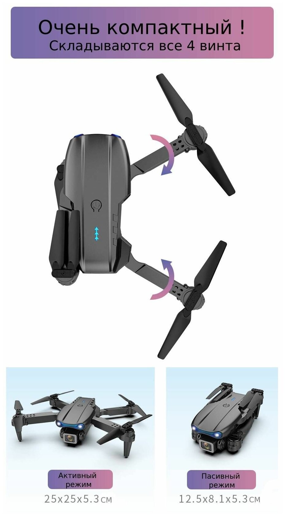 Квадрокоптер - дрон E99 pro с камерой HD Wi-Fi черный - 2 аккумулятора интересное: