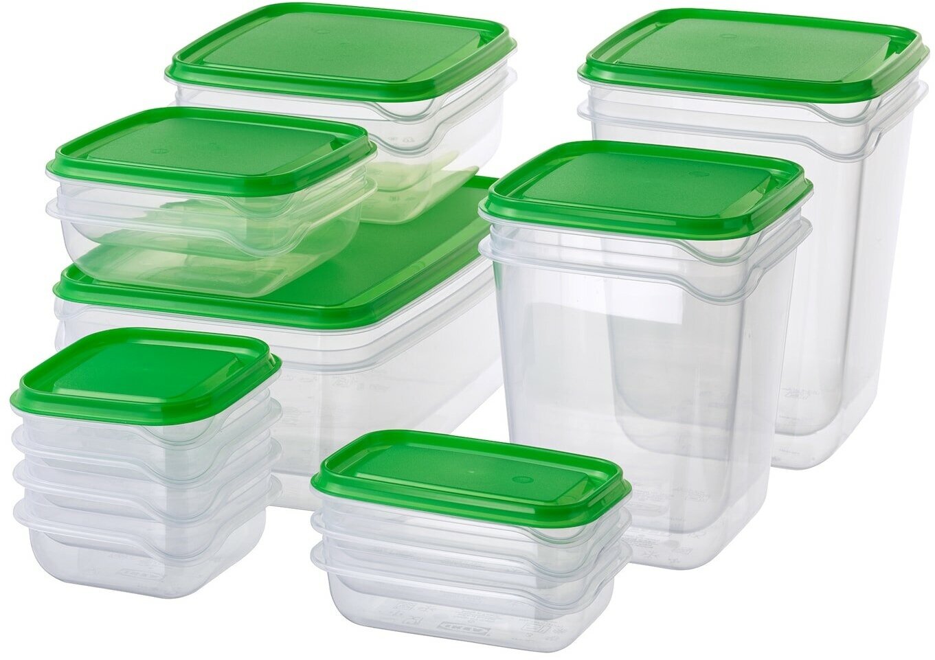 Прута набор контейнеров икеа ,17шт., прозрачный/зеленый